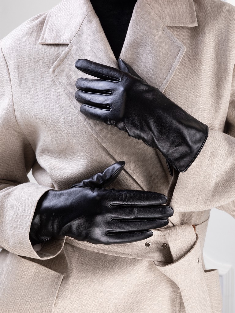 Перчатки женские базовые торговой марки LABBRA из натуральной кожи ягненка. Производитель Китай. Подкладка: 70% шерсть, 30% акрил. Резинка на ладонной части, что обеспечивает плотную посадку по запястью. Длина манжеты от нижней точки большого пальца до края перчаток - 5 см. Длина пальцев - средняя.