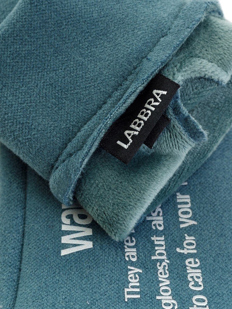 Перчатки торговой марки LABBRA производства Китай выполнены из трикотажного полотна. Состав трикотажа: 90% полиэстер, 10% эластан. На лицевой стороне текстовый принт. Длина манжеты от нижней точки большого пальца до края перчатки 6 см. Длина пальцев - средняя. Модель перчатки универсального размера, подойдёт на любую полноту руки благодаря хорошему стрейчу и эластичности трикотажа.