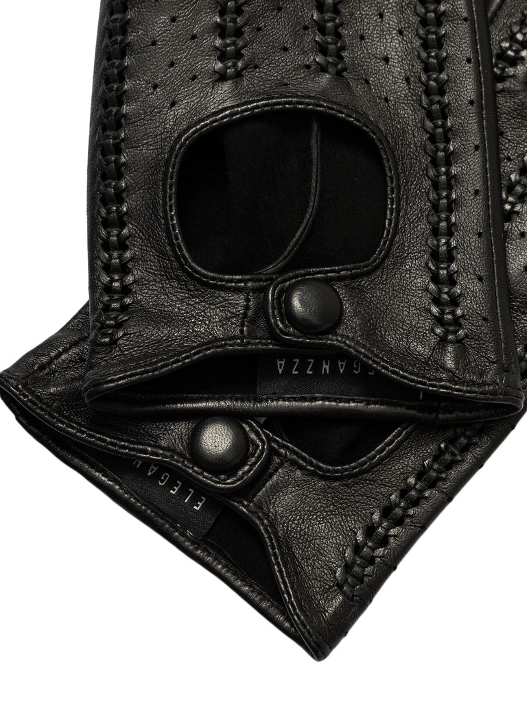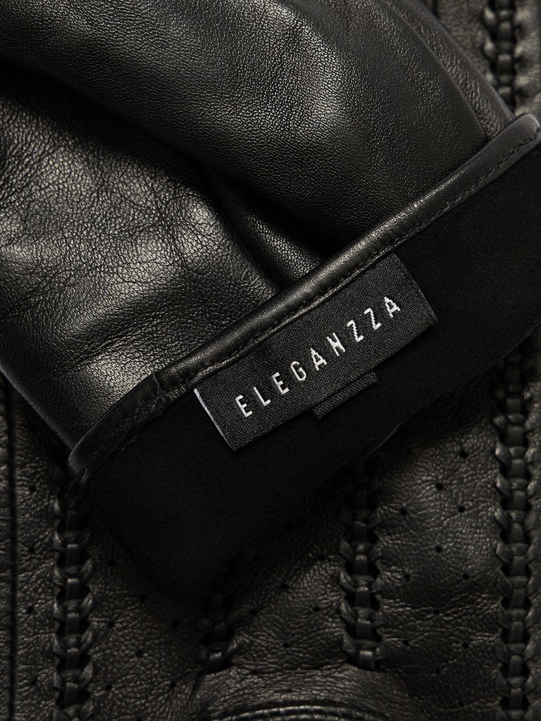 Перчатки женские торговой марки ELEGANZZA. Выполнены из высококачественной натуральной кожи ягненка. Без подклада. Изделие украшено деликатной декоративной продержкой, выполненной вручную и с особой тщательностью. На лицевой стороне располагается вырез и кнопка, обтянутая кожей. Модель со средней длиной пальцев и длиной манжеты от нижней точки большого пальца до края перчаток - 3 см.