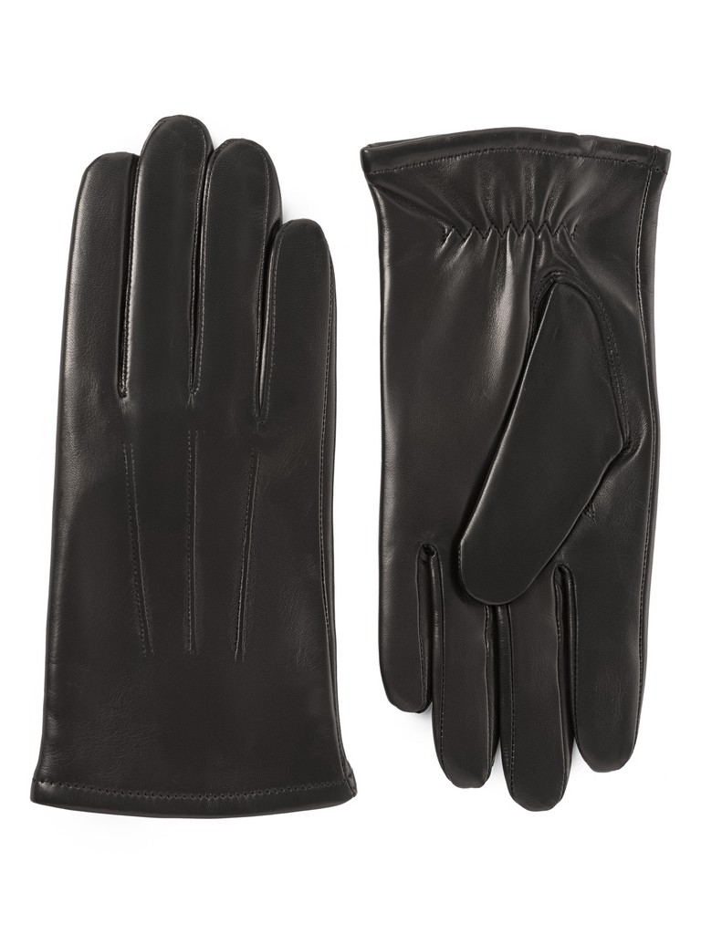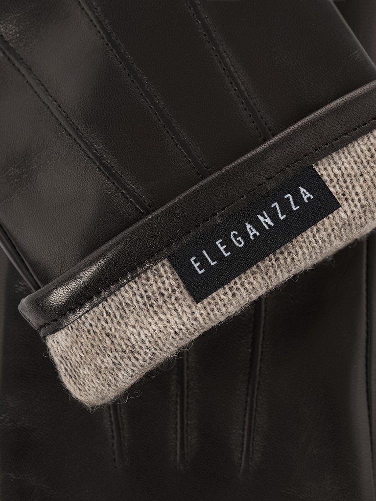 Перчатки торговой марки ELEGANZZA производства Китай из натуральной кожи ягненка. Подкладка: 100% шерсть. На лицевой стороне декоративные швы "три луча". На ладонной стороне резинка. Длина манжета от нижней точки большого пальца до края перчаток - 6 см. Длина пальцев средняя.