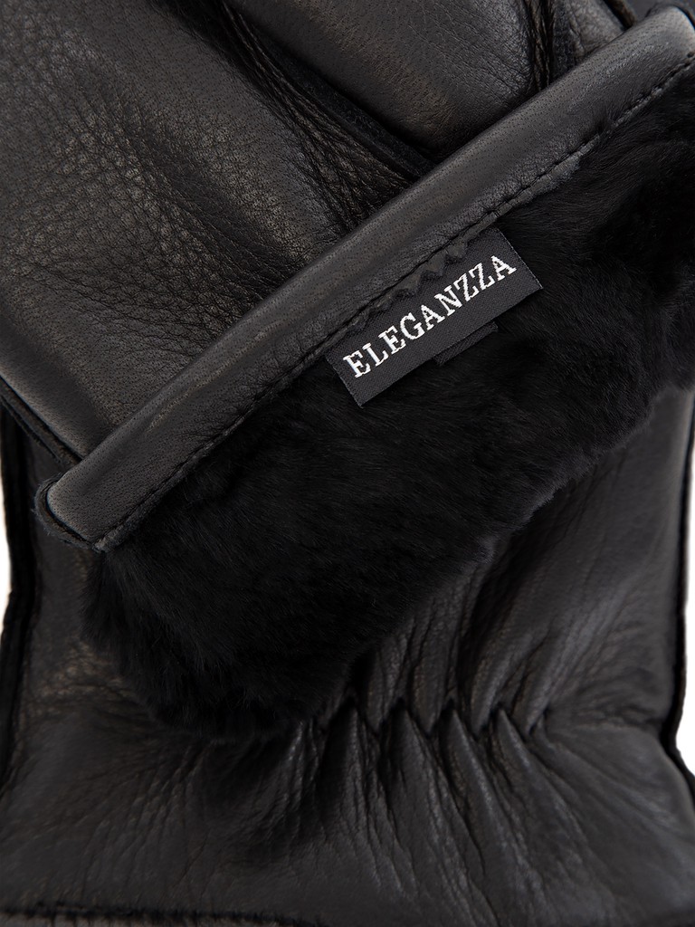 Перчатки торговой марки ELEGANZZA производства Китай выполнены из натуральной кожи оленя. Декоративная отделка "три луча". Подкладка: натуральный мех (мутон). Длина манжеты от нижней точки большого пальца до края перчаток - 4.5 см. Длина пальцев - средняя.