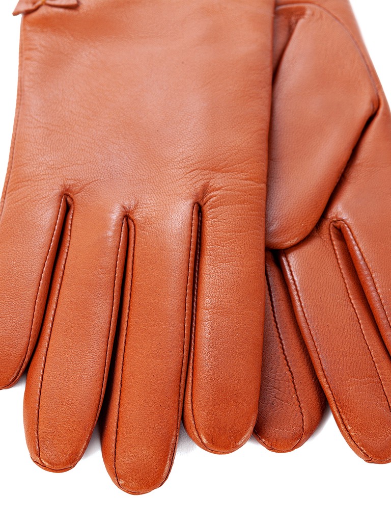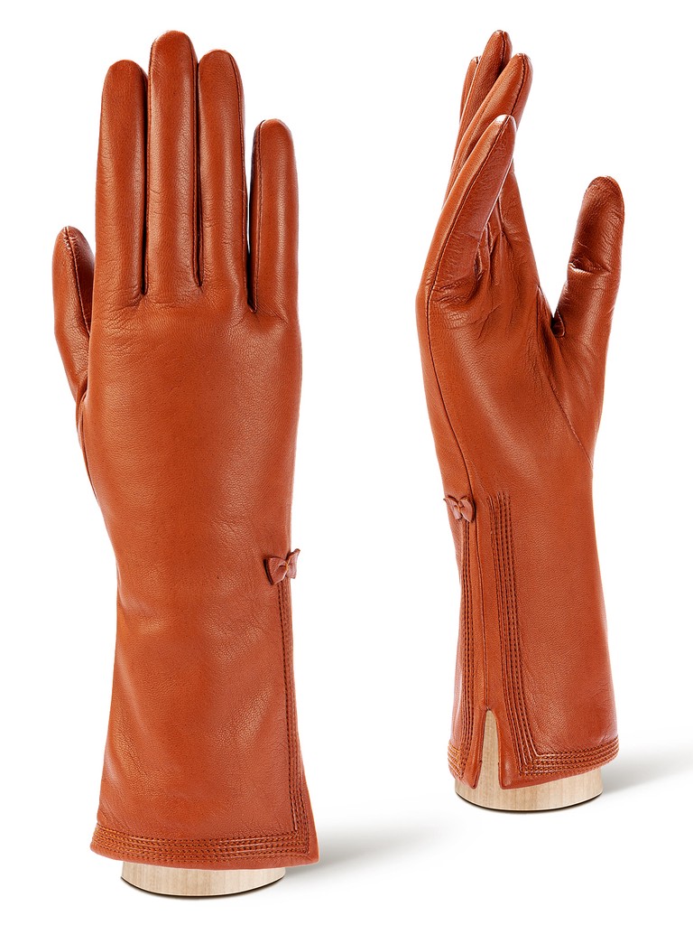 Перчатки торговой марки ELEGANZZA производства Филиппины выполнены из натуральной кожи ягненка. Подкладка: 50% шерсть + 50% кашемир. Отделка - тройной шов по краю манжеты и элегантный маленький бантик. Длина манжеты от нижней точки большого пальца до края перчаток - 11.5 см. Длина пальцев - средняя.