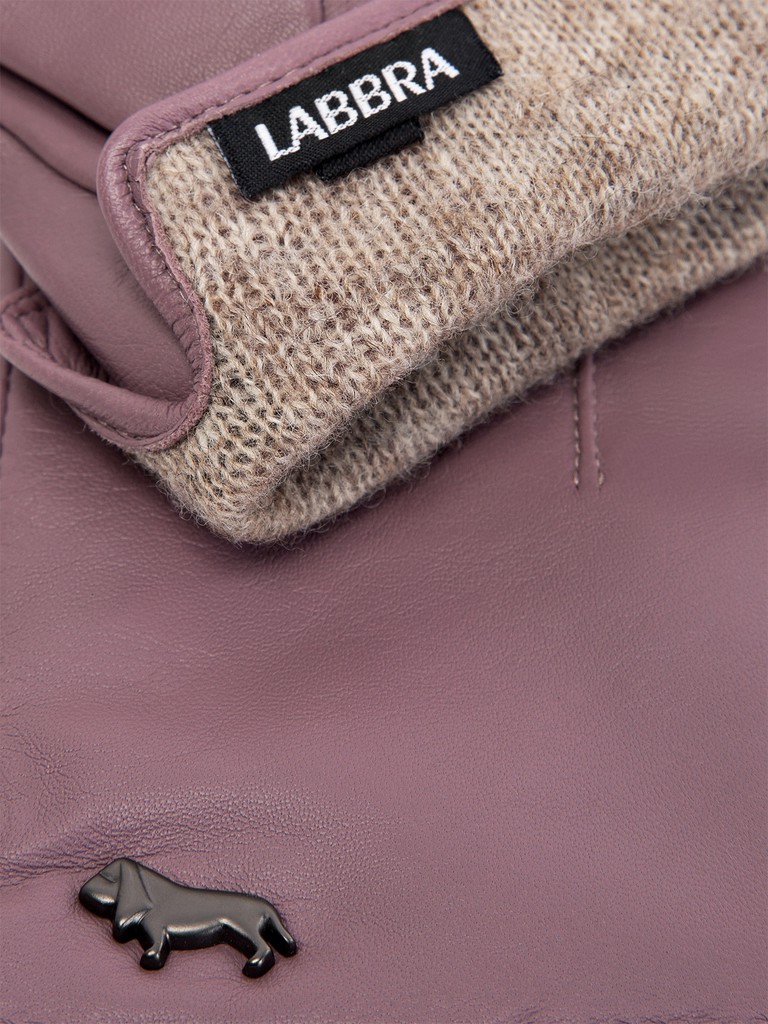 Перчатки торговой марки LABBRA из натуральной кожи ягненка. Производитель Китай. Подкладка: 70% шерсть, 30% акрил. Отделка - машинная строчка "три луча", фирменная фурнитура в виде собачки. Длина манжеты от нижней точки большого пальца до края перчаток - 6 см. Длина пальцев - средняя.
