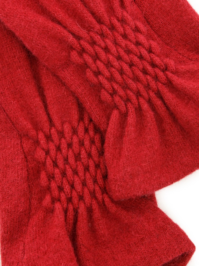 Перчатки женские торговой марки LABBRA производства Китай выполнены из трикотажной шерсти. Состав трикотажа: 80% шерсть, 20% нейлон. Отделка - декоративные защипы на лицевой стороне в районе манжеты. Длина манжеты от нижней точки большого пальца до края перчатки - 7 см. Длина пальцев - средняя.