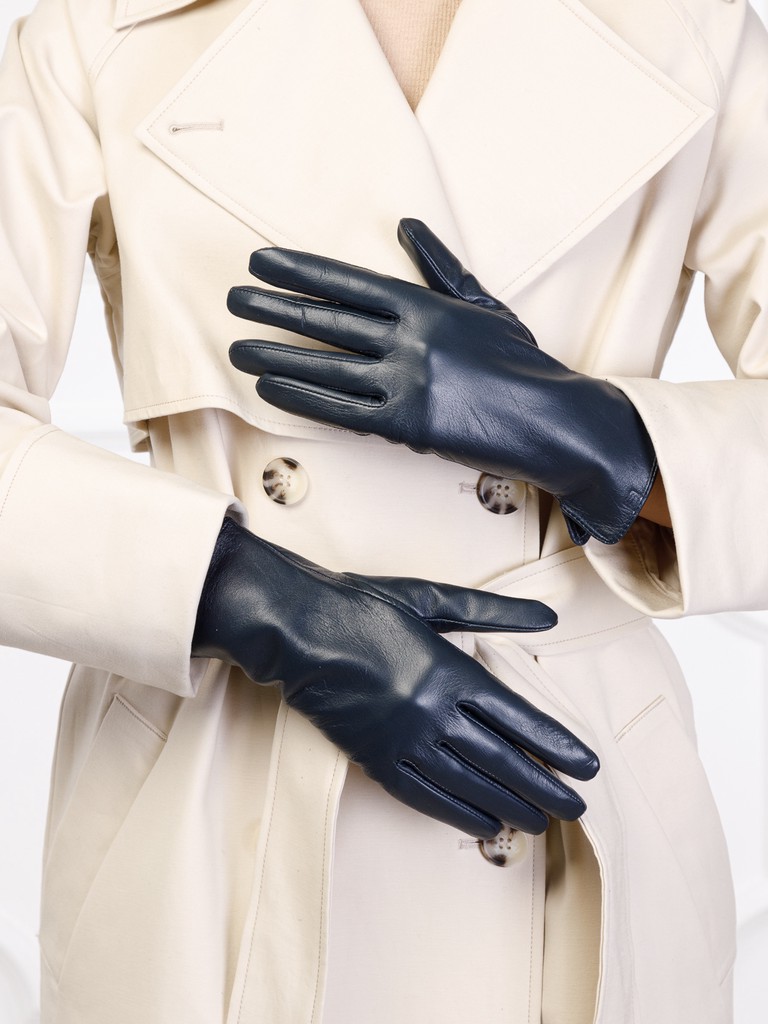 Перчатки женские торговой марки LABBRA производства Китай. Выполнены из натуральной кожи ягненка. Подкладка: шелк. Отделка - боковой разрез по линии мизинца. Длина манжеты от нижней точки большого пальца до края перчаток - 6 см. Длина пальцев - средняя.
