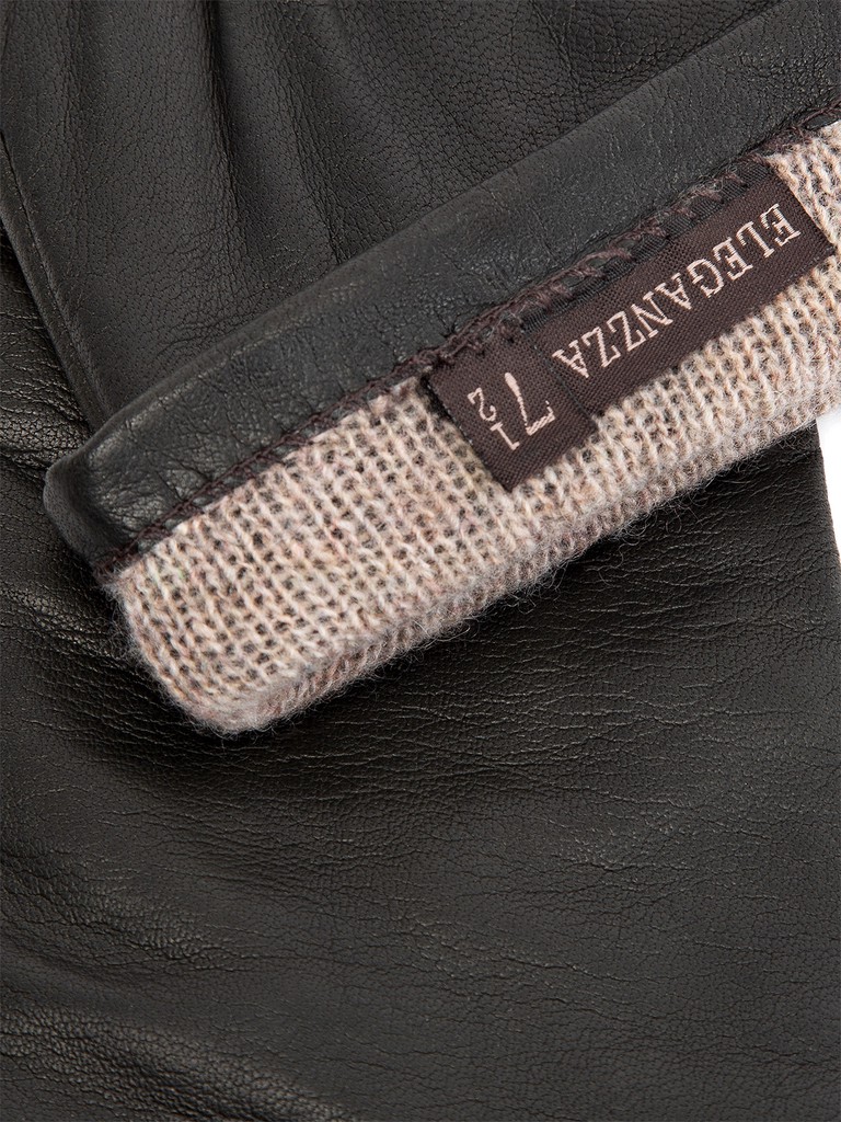Перчатки женские торговой марки ELEGANZZA из натуральной кожи ягненка. Производство Филиппины. Подкладка: 50% шерсть + 50% кашемир. Длина манжеты от нижней точки большого пальца до края перчаток - 15.2 см. Длина пальцев - средняя.
