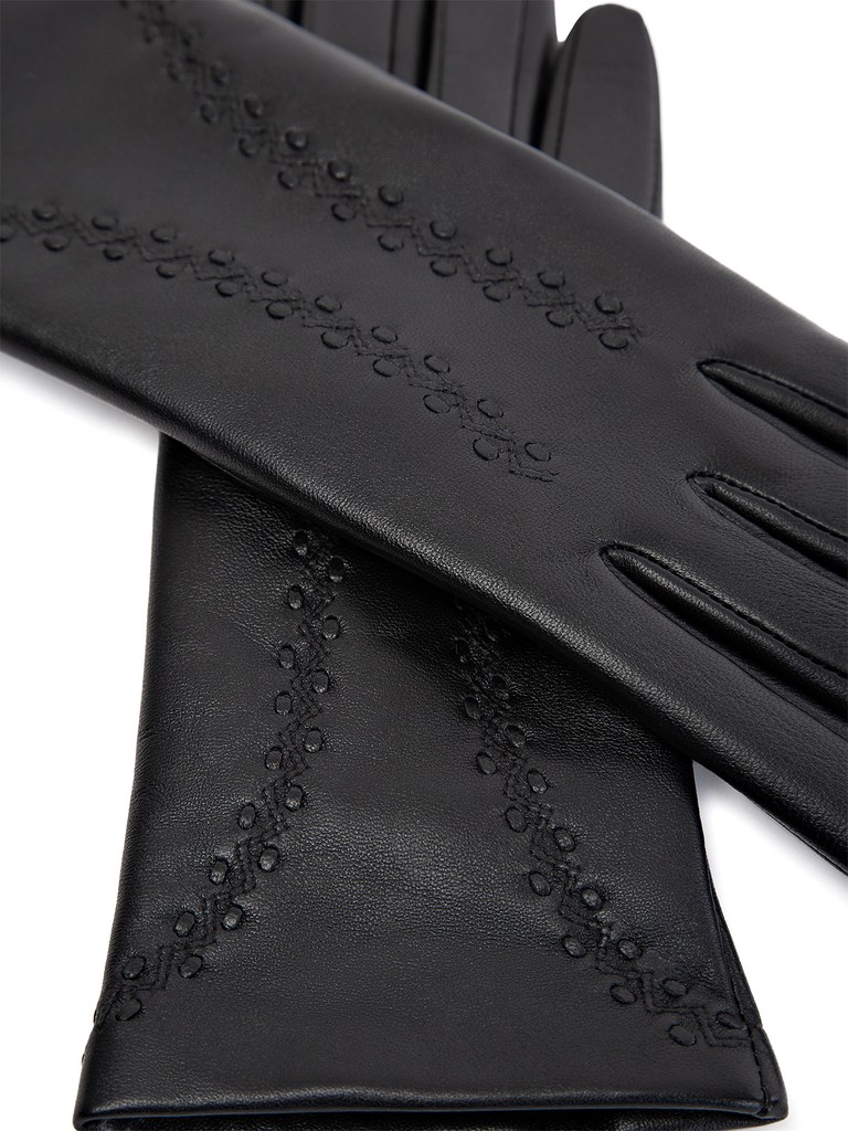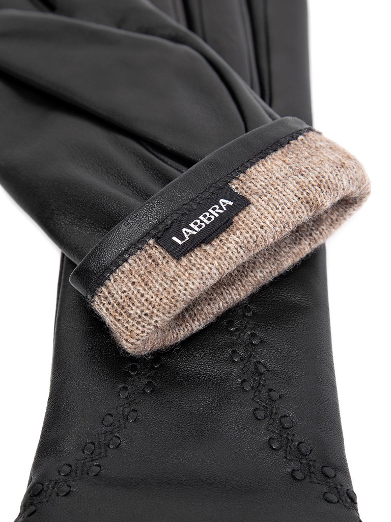 Перчатки женские торговой марки LABBRA производства Китай. Выполнены из натуральной кожи ягненка. Подкладка - 70% шерсть + 30% акрил. Отделка - декоративные швы на лицевой стороне. Длина манжеты от нижней точки большого пальца до края перчаток - 6 см. Длина пальцев - средняя.