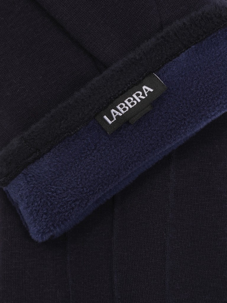 Перчатки мужские торговой марки LABBRA производства Китай выполнены из трикотажного полотна. Состав трикотажа: 50% хлопок, 50% полиэстер. Отделка - декоративные строчки "три луча" на лицевой части. Длина манжеты от нижней точки большого пальца до края перчатки - 6 см. Длина пальцев - средняя. Модель перчатки универсального размера, подойдёт на любую полноту руки благодаря хорошему стрейчу и эластичности трикотажа.