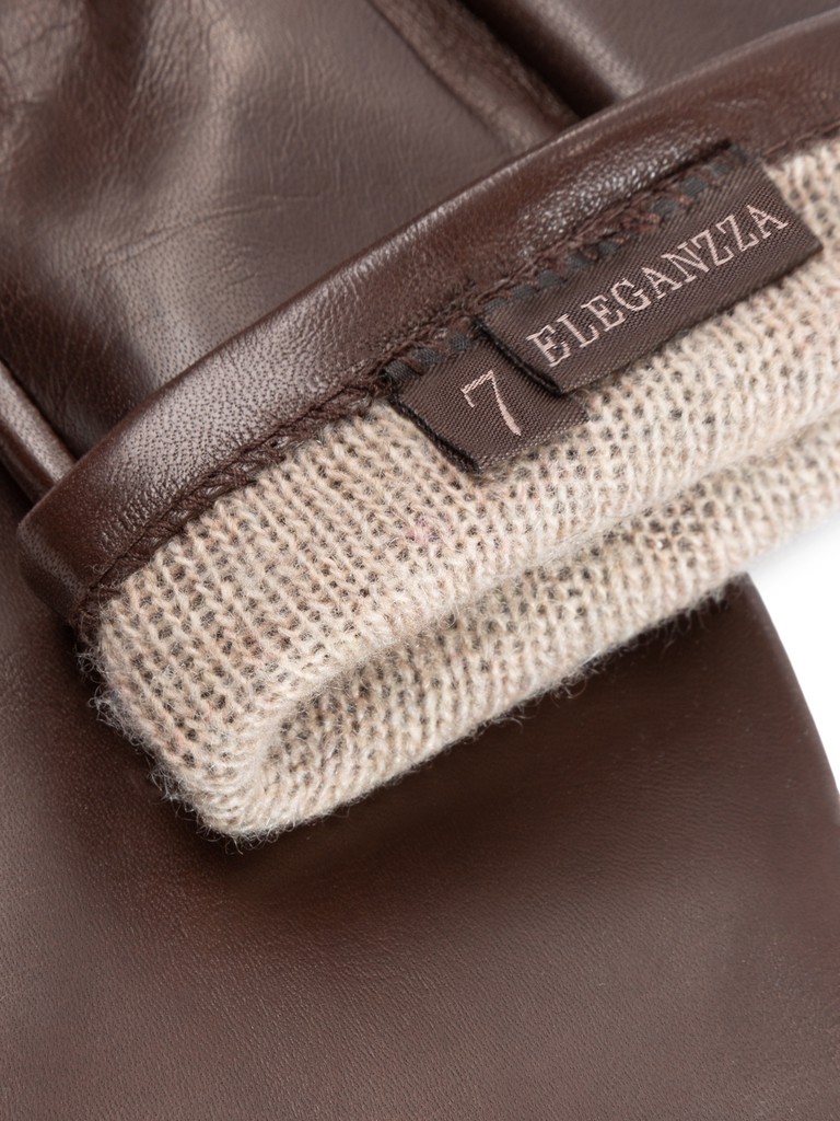 Перчатки торговой марки ELEGANZZA производства Филиппины выполнены из натуральной кожи ягненка. Подкладка: 50% шерсть + 50% кашемир. Данная модель позволяет работать с сенсорным экраном. Длина манжеты от нижней точки большого пальца до края перчаток - 15.2 см. Длина пальцев - средняя.