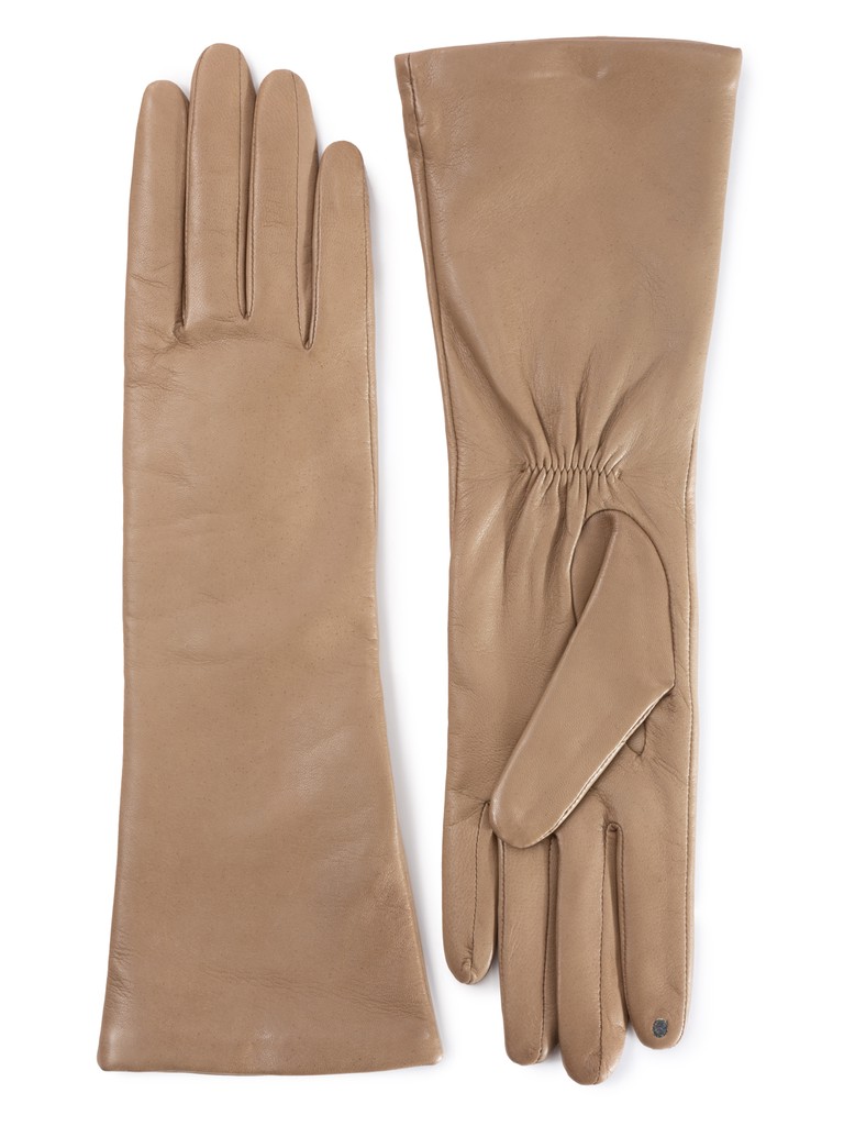 Перчатки торговой марки ELEGANZZA производства Филиппины выполнены из натуральной кожи ягненка. Подкладка: 50% шерсть + 50% кашемир. Данная модель позволяет работать с сенсорным экраном. Длина манжеты от нижней точки большого пальца до края перчаток - 15.2 см. Длина пальцев - средняя.