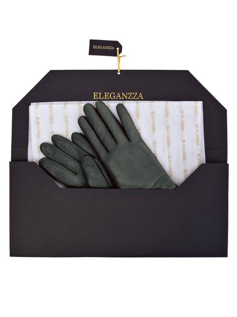 Перчатки женские торговой марки ELEGANZZA из натуральной кожи ягненка. Производство Филиппины. Подкладка: 50% шерсть + 50% кашемир. Данная модель позволяет работать с сенсорным экраном. Длина манжеты от нижней точки большого пальца до края перчаток - 6.5 см. Длина пальцев - средняя.