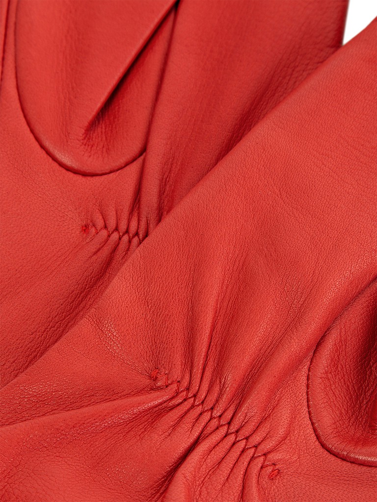 Перчатки женские торговой марки ELEGANZZA из натуральной кожи ягненка. Производство Филиппины. Подкладка: 50% шерсть + 50% кашемир. Данная модель позволяет работать с сенсорным экраном. Длина манжеты от нижней точки большого пальца до края перчаток - 6.5 см. Длина пальцев - средняя.