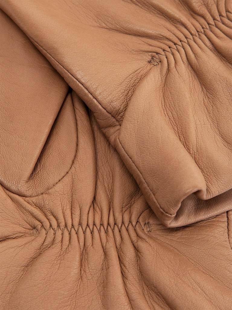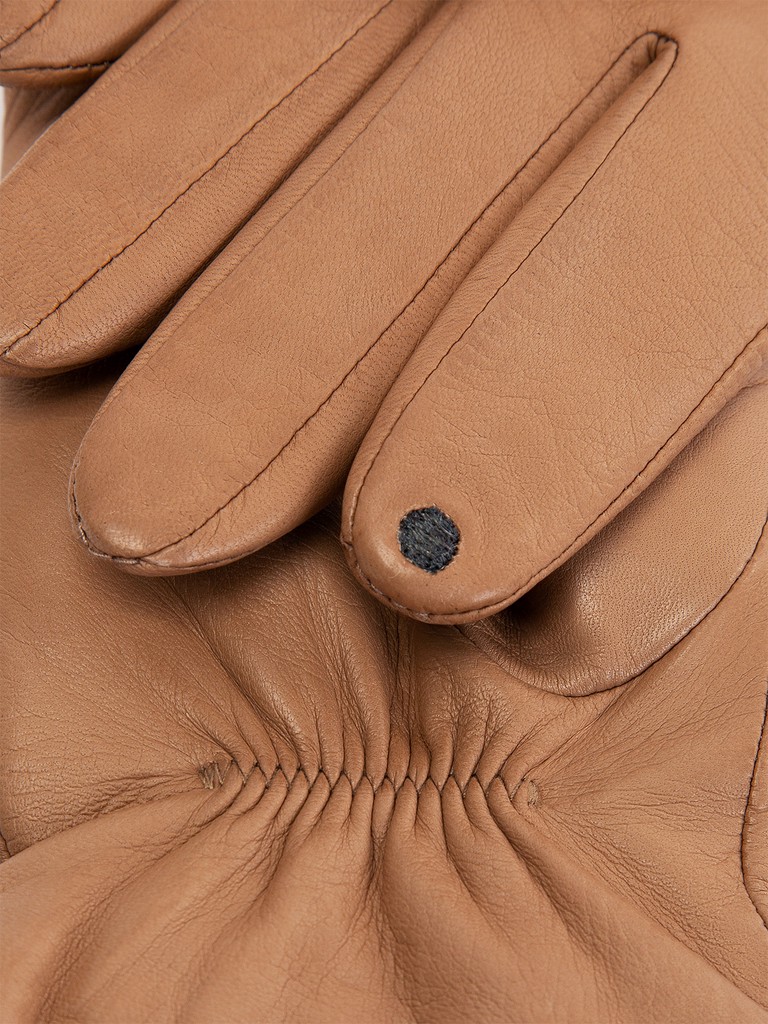 Перчатки женские торговой марки ELEGANZZA из натуральной кожи ягненка. Производство Филиппины. Подкладка: 50% шерсть + 50% кашемир. Данная модель позволяет работать с сенсорным экраном. Длина манжеты от нижней точки большого пальца до края перчаток - 6.5 см. Длина пальцев - средняя.