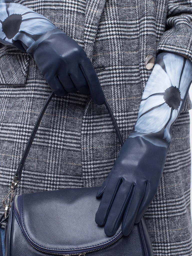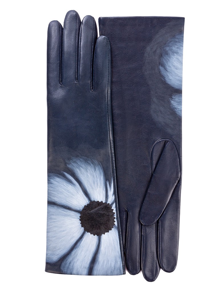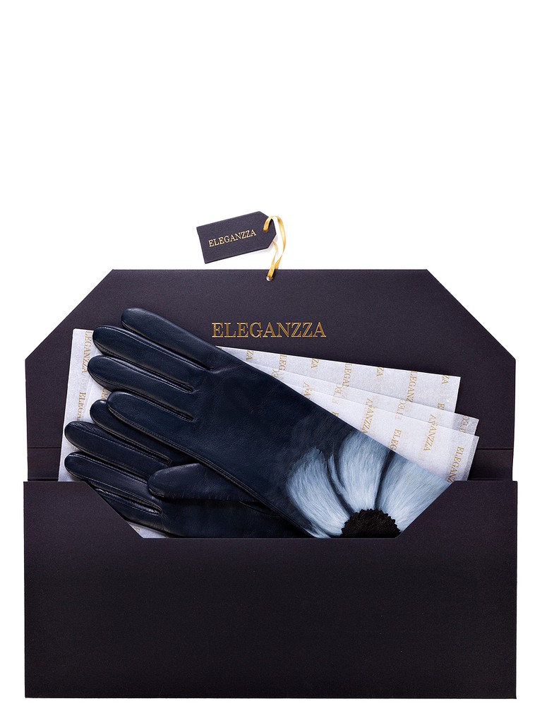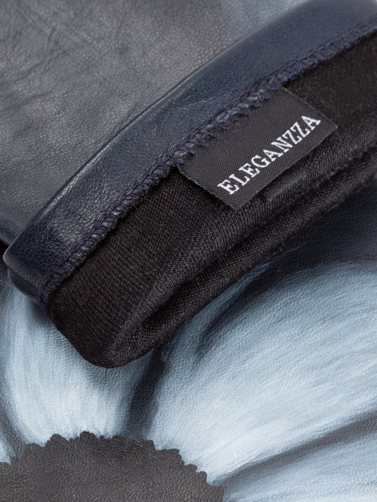 Перчатки женские торговой марки ELEGANZZA из натуральной кожи ягненка. Производство Филиппины. Подкладка: натуральный шелк. Отделка - уникальная роспись на каждой перчатке вручную. Длина манжеты от нижней точки большого пальца до края перчаток - 15 см. Длина пальцев - средняя.