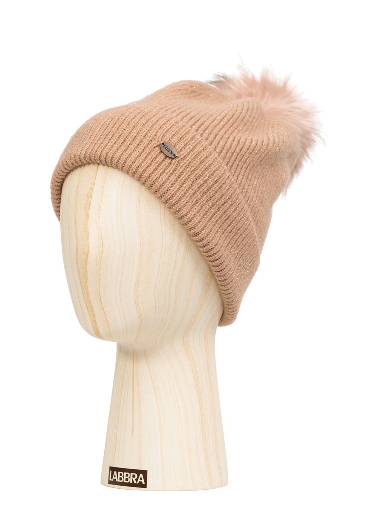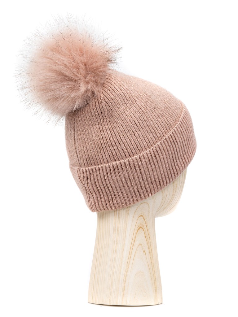 Шапка жен. шерсть+нейл+акр+люр LB-D77103 dirty pink