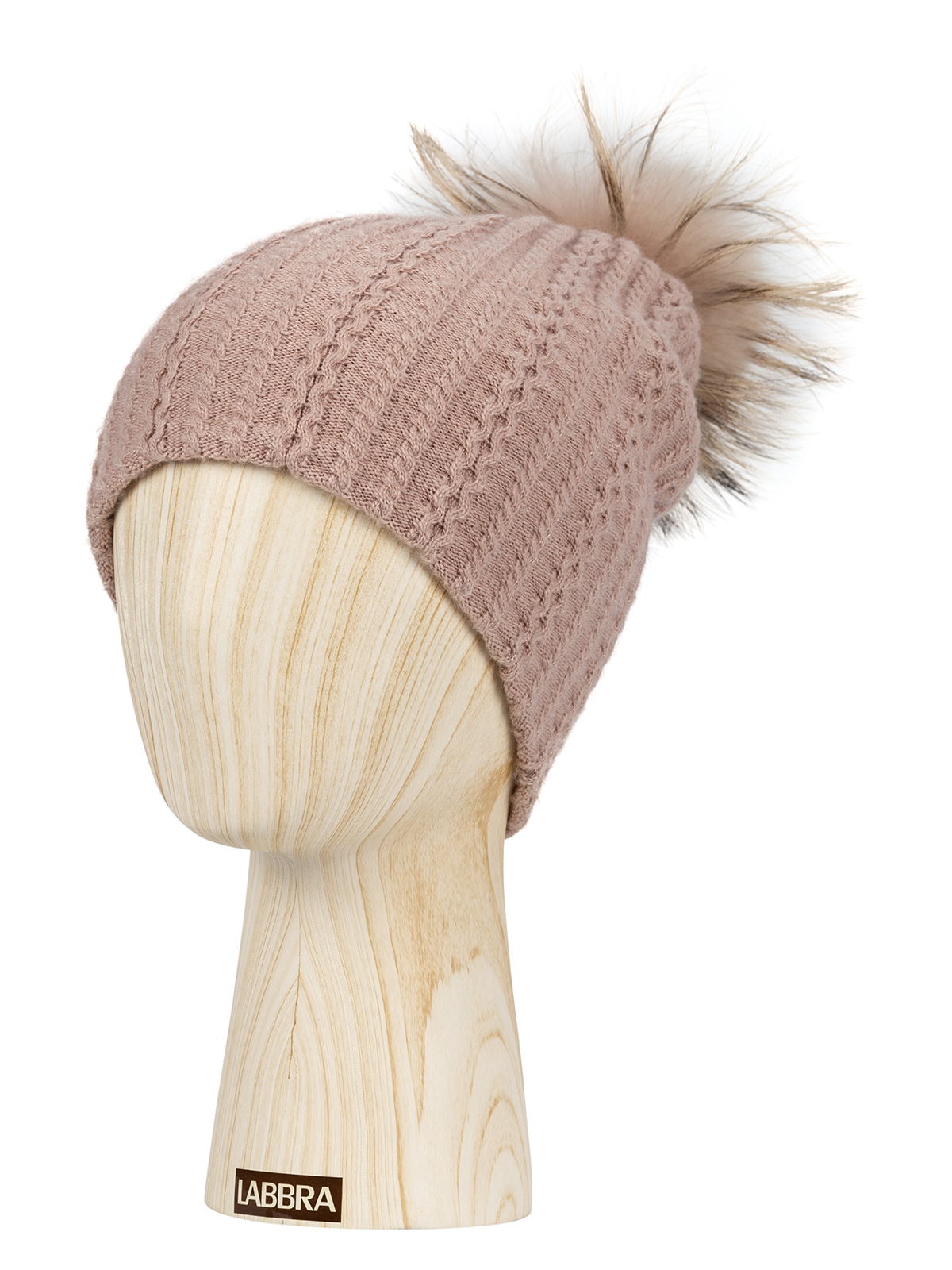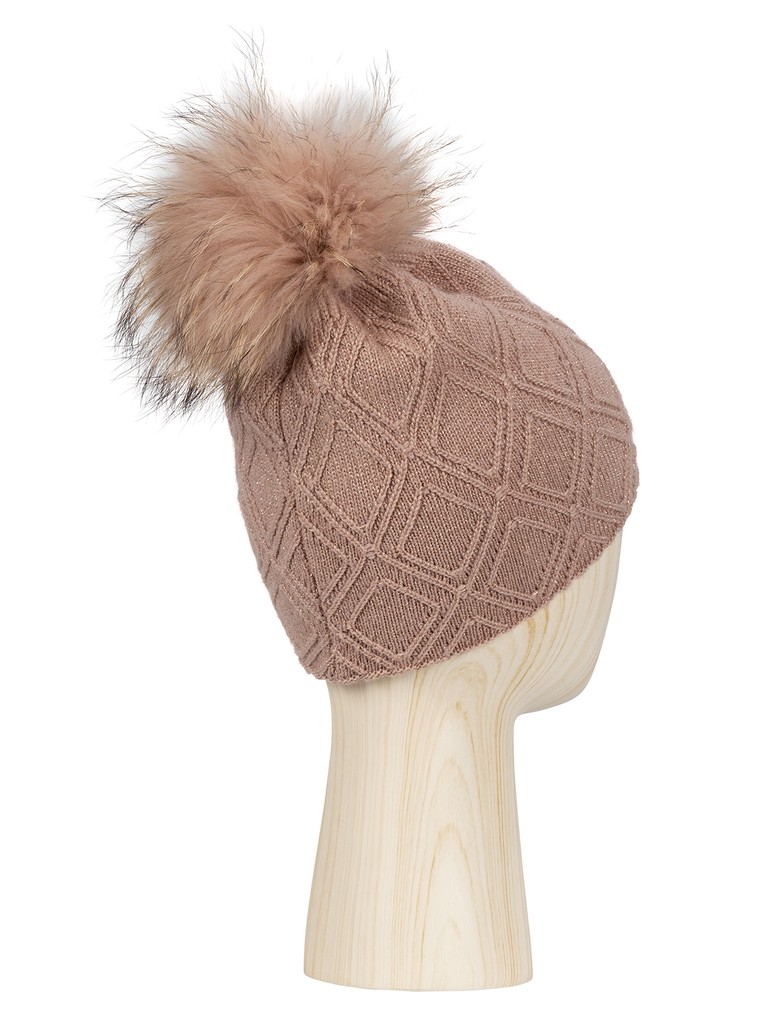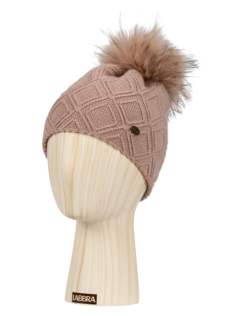 Шапка жен. шерсть+анг+виск+каш+люр LB-D77016 dirty pink/gold