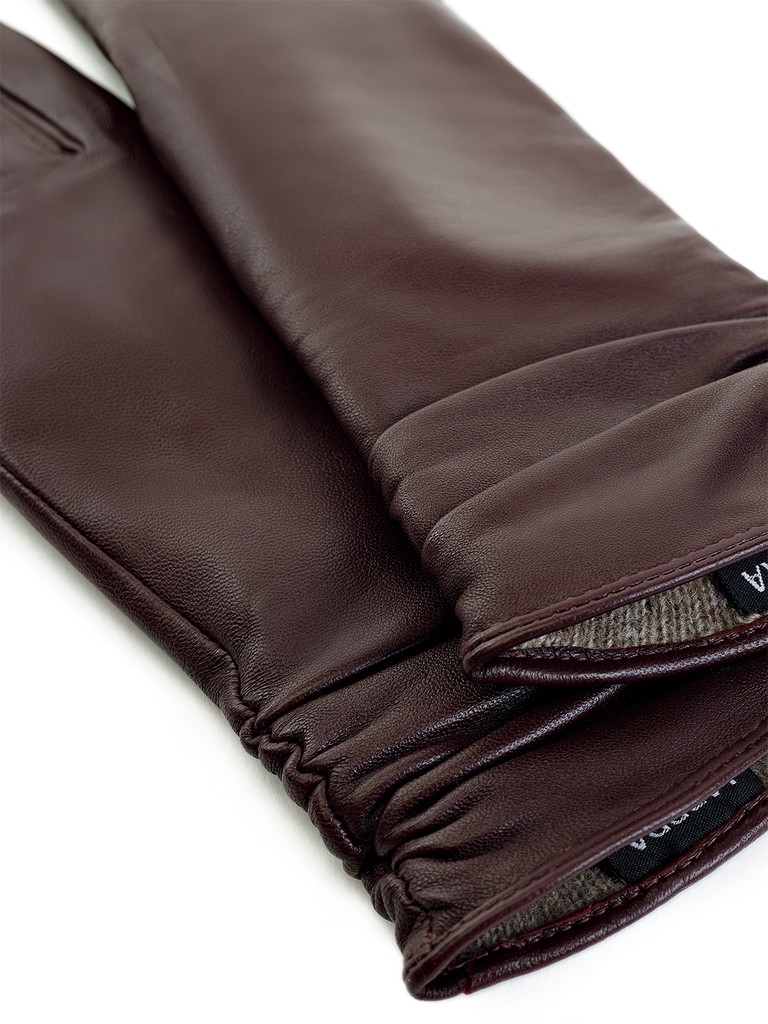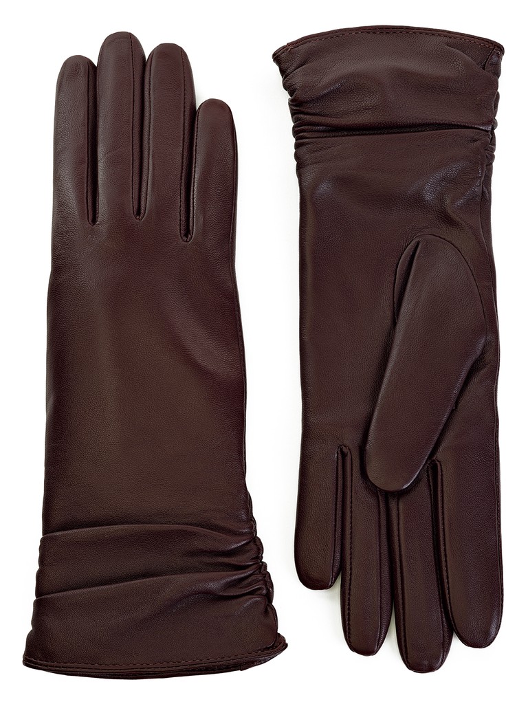 Перчатки торговой марки LABBRA из натуральной кожи ягненка. Производитель Китай. Подкладка: 70% шерсть + 30% акрил. Отделка - декоративная сборка по всей длине манжеты. Длина манжеты от нижней точки большого пальца до края перчаток - 11.5 см. Длина пальцев - средняя.