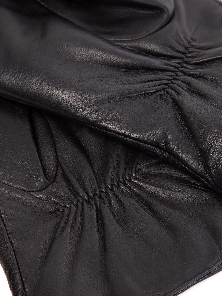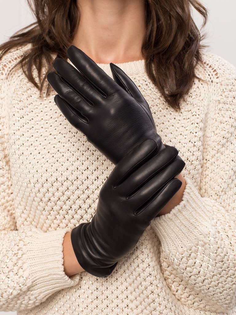 Перчатки женские торговой марки ELEGANZZA из натуральной кожи ягненка. Производство Филиппины. Подкладка: 50% шерсть + 50% кашемир. Данная модель позволяет работать с сенсорным экраном. Длина манжеты от нижней точки большого пальца до края перчаток - 6.5 см. Длина пальцев - средняя.