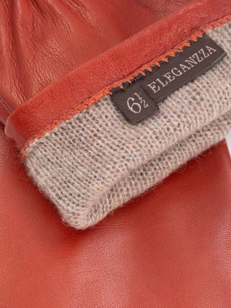 Перчатки торговой марки ELEGANZZA производства Филиппины выполнены из натуральной кожи ягненка. Подкладка: 50% шерсть + 50% кашемир. Длина манжеты от нижней точки большого пальца до края перчаток - 15.2 см. Длина пальцев - средняя.