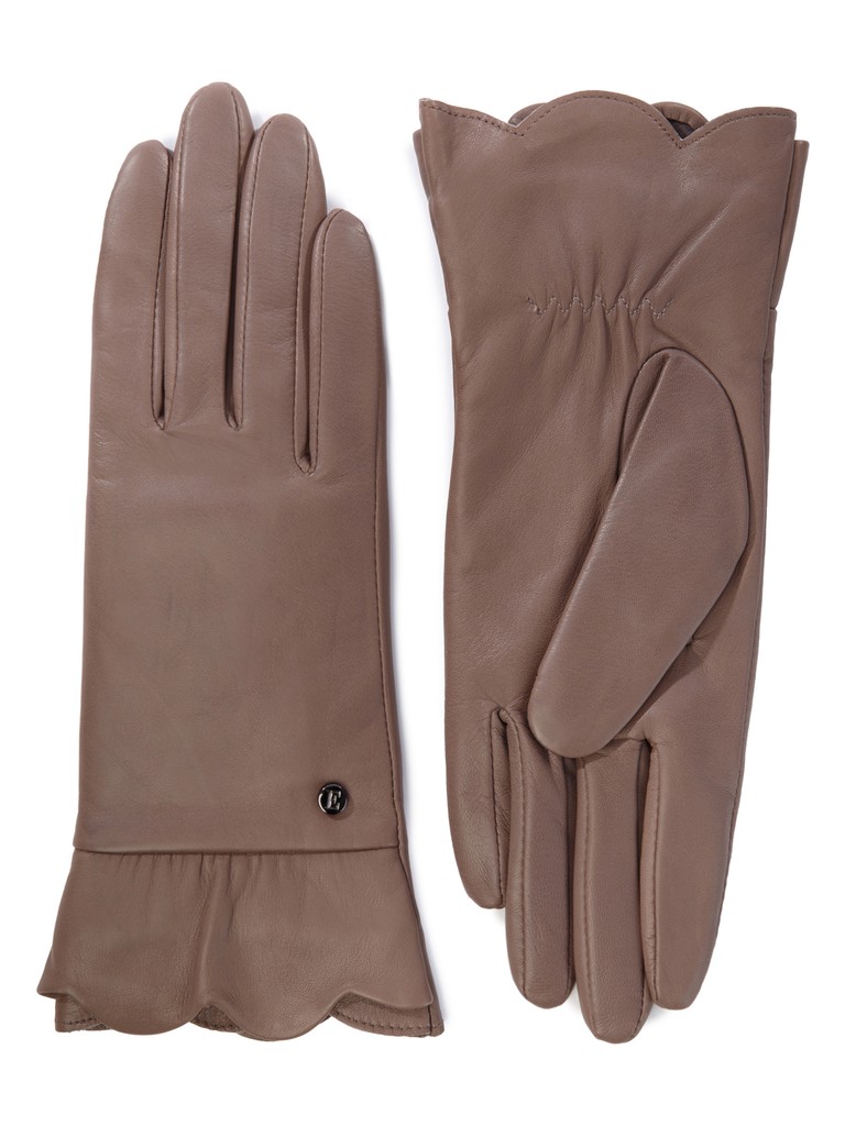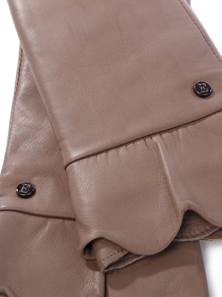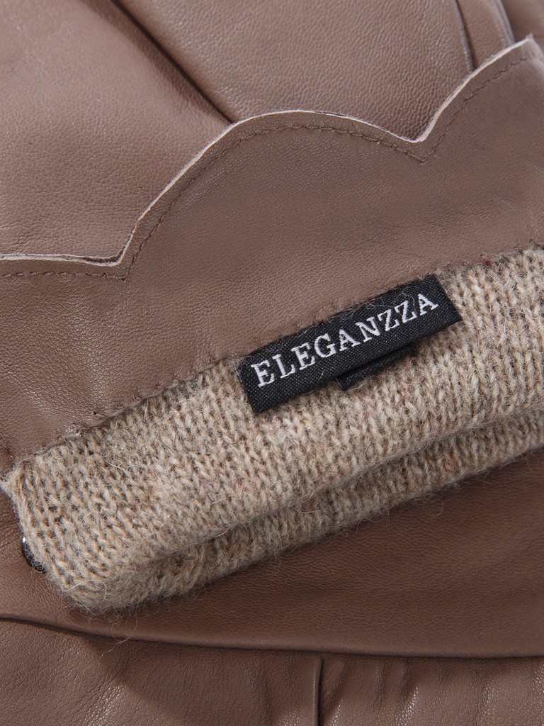 Перчатки торговой марки ELEGANZZA производства Китай выполнены из натуральной кожи ягненка. Подкладка: 70% шерсть + 30% кашемир. Отделка - декоративные лепестки из лоскутов кожи по манжету, а также фурнитура с фирменной символикой. Длина манжеты от нижней точки большого пальца до края перчаток - 5 см. Длина пальцев - укороченные.