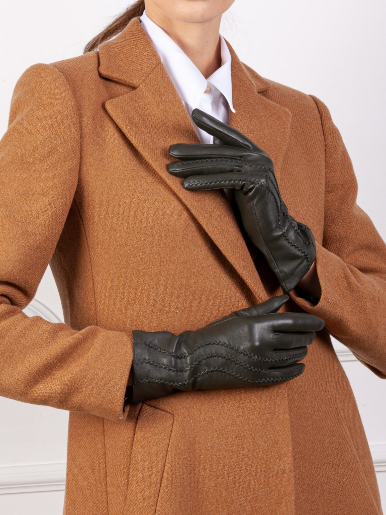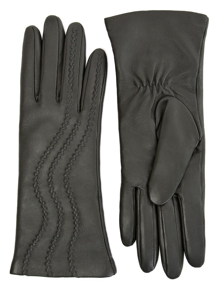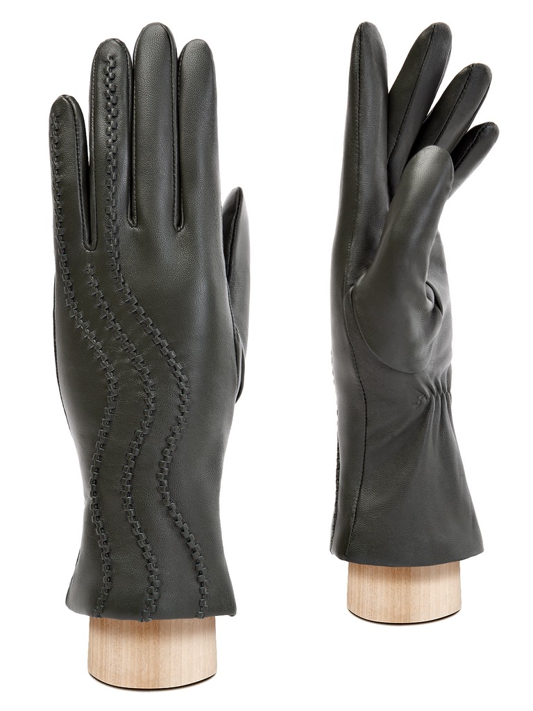 Перчатки женские торговой марки LABBRA производства Китай. Выполнены из натуральной кожи ягненка. Подкладка - 70% шерсть, 30% акрил. Декоративная отделка машинными швами. Резинка на ладонной стороне манжеты. Длина манжеты от нижней точки большого пальца до края перчаток - 10 см. Длина пальцев - средняя.
