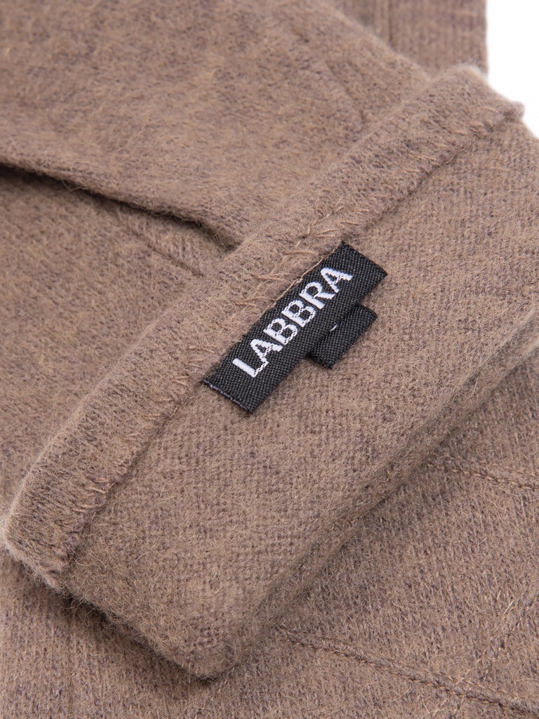 Перчатки торговой марки LABBRA производства Китай выполнены из трикотажной шерсти. Состав трикотажа: 80% шерсть, 20% нейлон. Без подкладки. Отделка - декоративные строчки ромбами на лицевой стороне. Длина манжеты от нижней точки большого пальца до края перчатки 5 см. Длина пальцев - средняя.