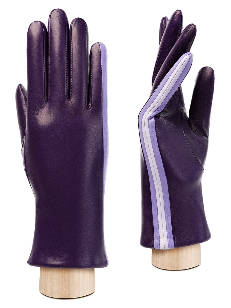 Перчатки женские торговой марки ELEGANZZA из натуральной кожи ягненка. Производство Италия. Подкладка: 85% шерсть, 15% кашемир. Отделка - контрастные вставки вдоль линии мизинца из натурального велюра и кожи. Длина манжеты от нижней точки большого пальца до края перчаток составляет - 6 см. Длина пальцев - средняя.