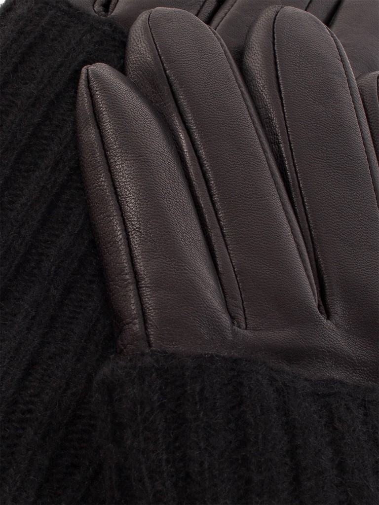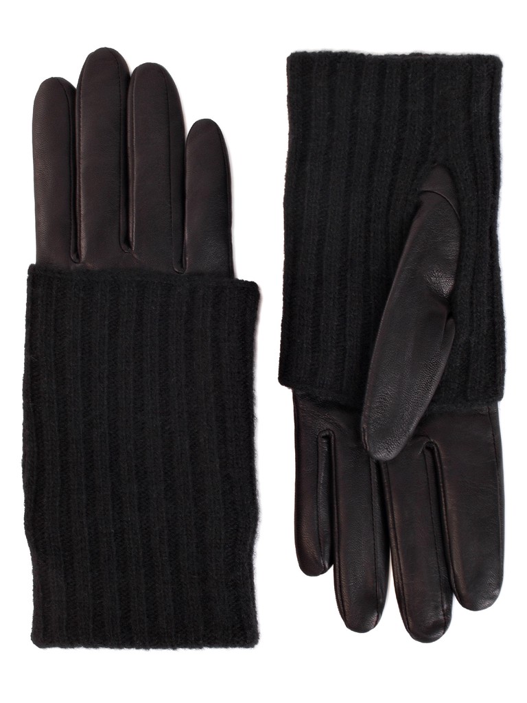 Перчатки женские торговой марки ELEGANZZA из натуральной итальянской кожи ягненка. Подкладка: 85% шерсть, 15% кашемир. Отделка - митенка из трикотажа рельефной вязки поверх кожаной перчатки. Благодаря этому модель особенно теплая и стильная. Длина манжеты от нижней точки большого пальца до края перчаток составляет - 6.5 см. Длина пальцев - средняя.