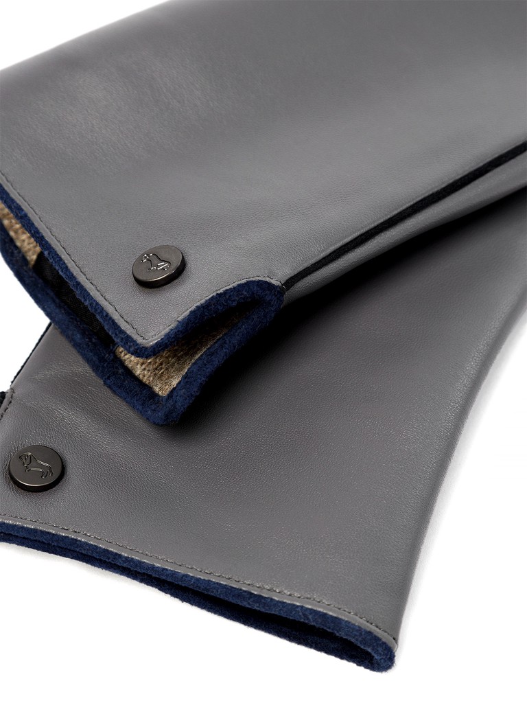Перчатки женские торговой марки LABBRA из натуральной кожи ягненка. Производитель Китай. Подкладка: 70% шерсть, 30% акрил. Отделка - кант контрастного цвета на боковой части по линии мизинца и линии манжета, выполненный из велюра; фирменная фурнитура LABBRA. Длина манжеты от нижней точки большого пальца до края перчаток - 5,5 см. Длина пальцев - средняя.