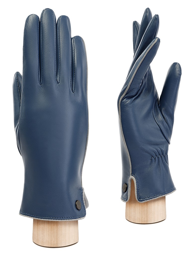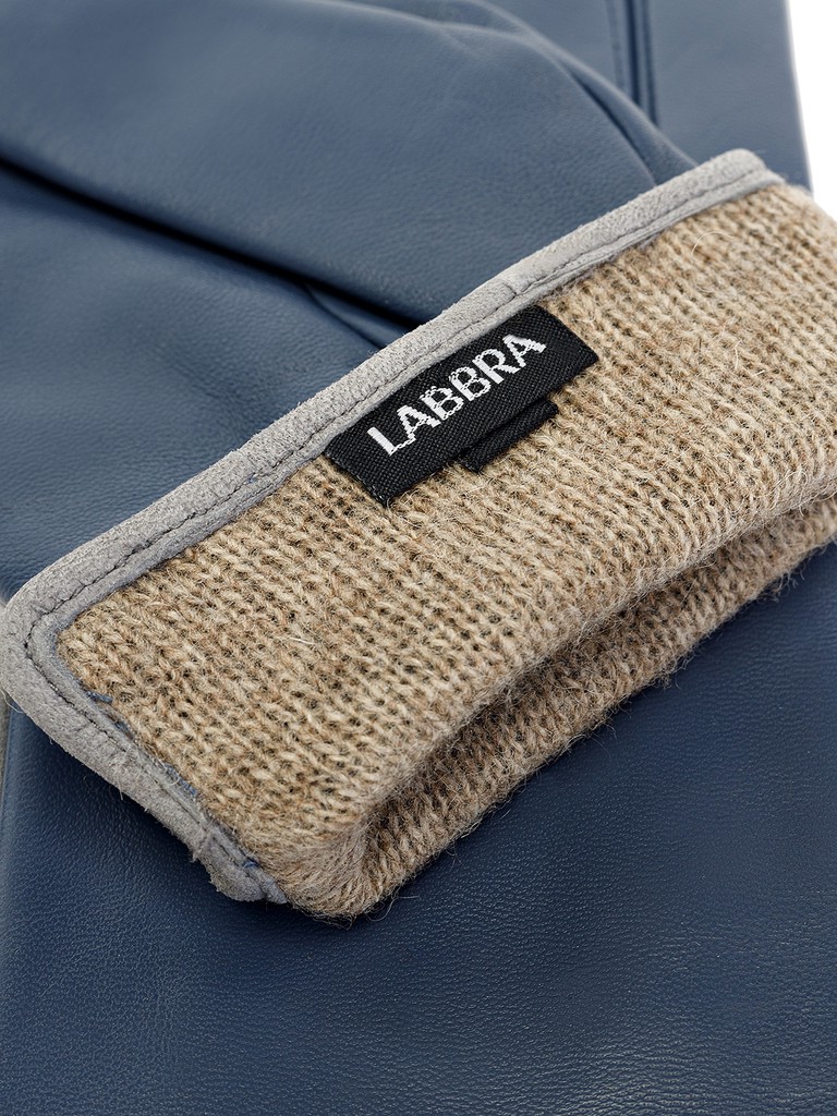 Перчатки женские торговой марки LABBRA из натуральной кожи ягненка. Производитель Китай. Подкладка: 70% шерсть, 30% акрил. Отделка - кант контрастного цвета на боковой части по линии мизинца и линии манжета, выполненный из велюра; фирменная фурнитура LABBRA. Длина манжеты от нижней точки большого пальца до края перчаток - 5,5 см. Длина пальцев - средняя.