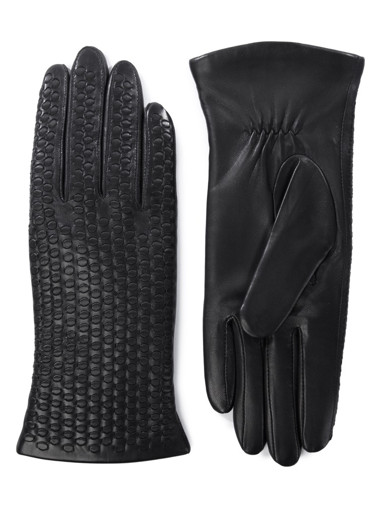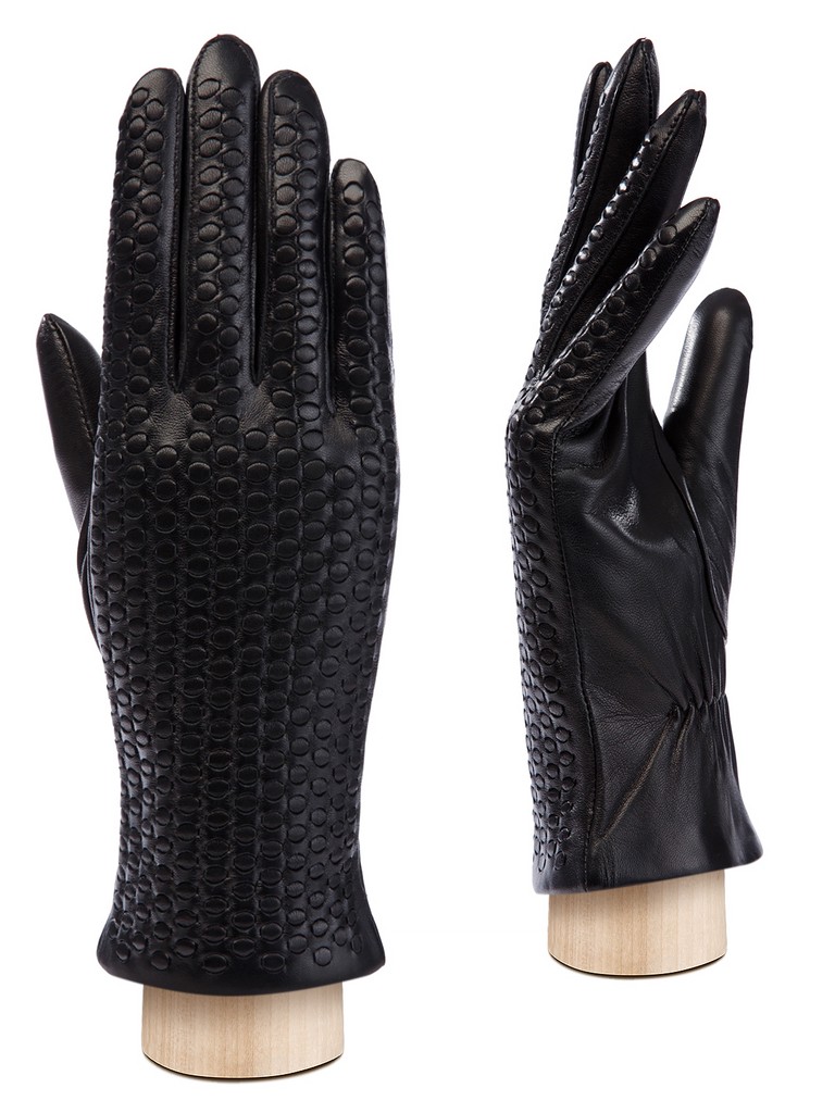Перчатки женские торговой марки ELEGANZZA из натуральной кожи ягненка. Производство Китай. Подкладка: 100% шерсть. Отделка – продержка тонким кожаным шнурком, что образует впечатляющий узор по всей лицевой части перчатки. Деликатная ручная работа. Длина манжеты от нижней точки большого пальца до края перчаток - 6 см. Длина пальцев - средняя.