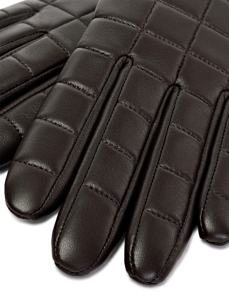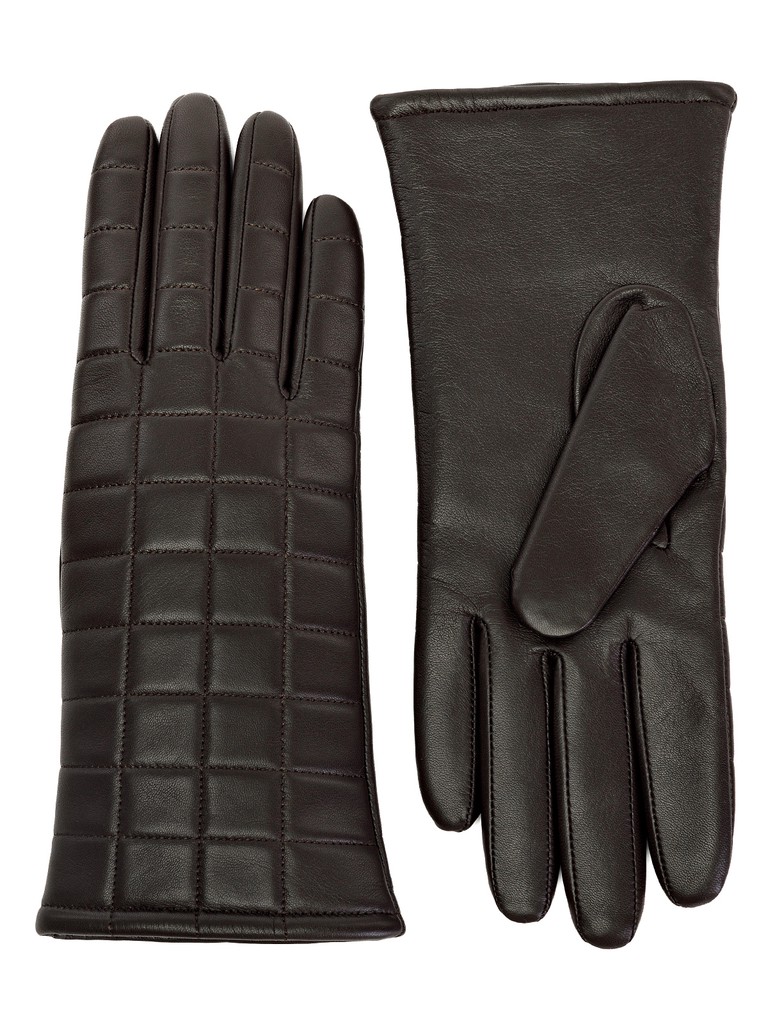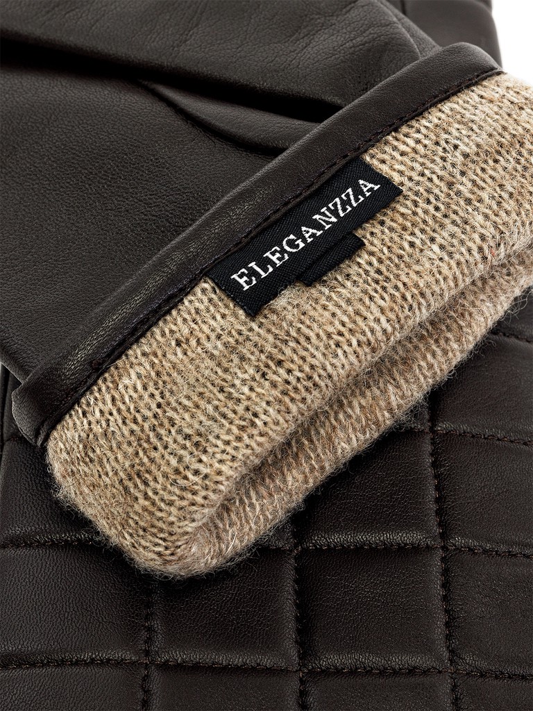 Перчатки женские торговой марки ELEGANZZA из натуральной кожи ягненка. Производство Китай. Подкладка: 100% шерсть. Отделка – декоративная отстрочка в форме симметричных квадратов по всей лицевой части. Длина манжеты от нижней точки большого пальца до края перчаток - 5 см. Длина пальцев - средняя.