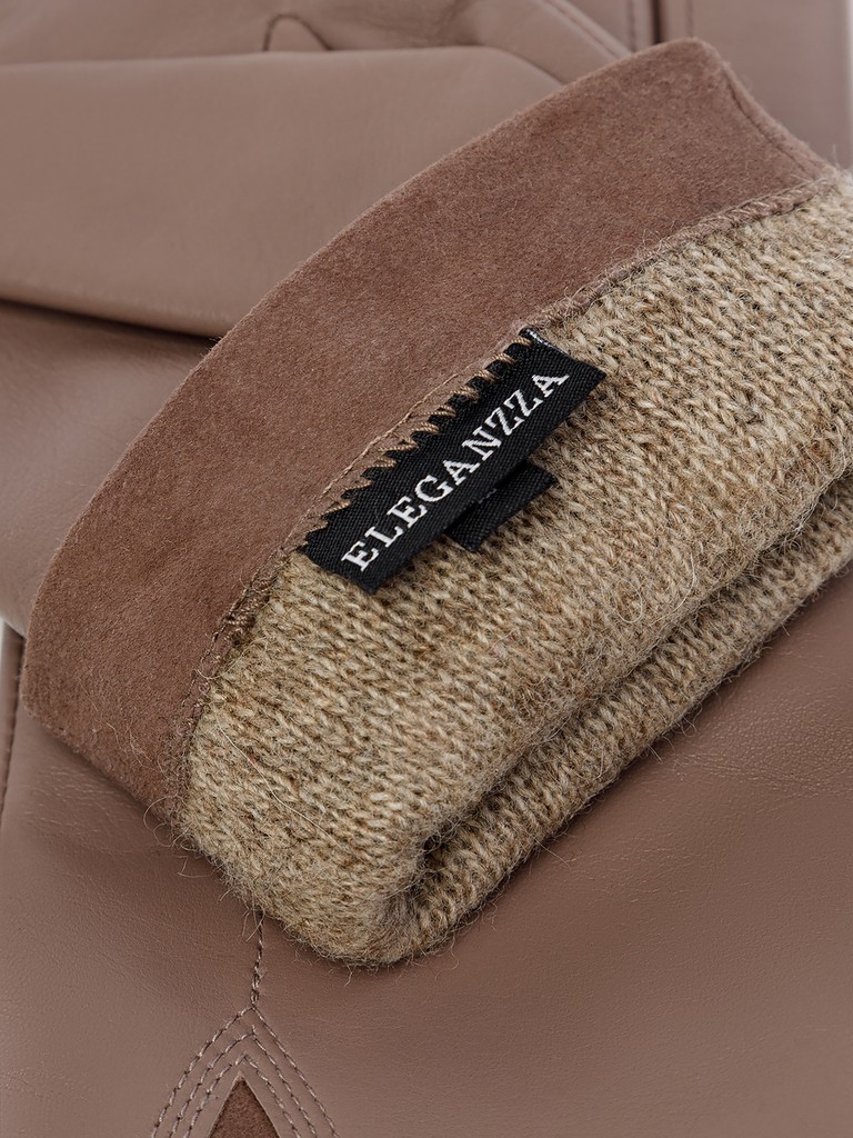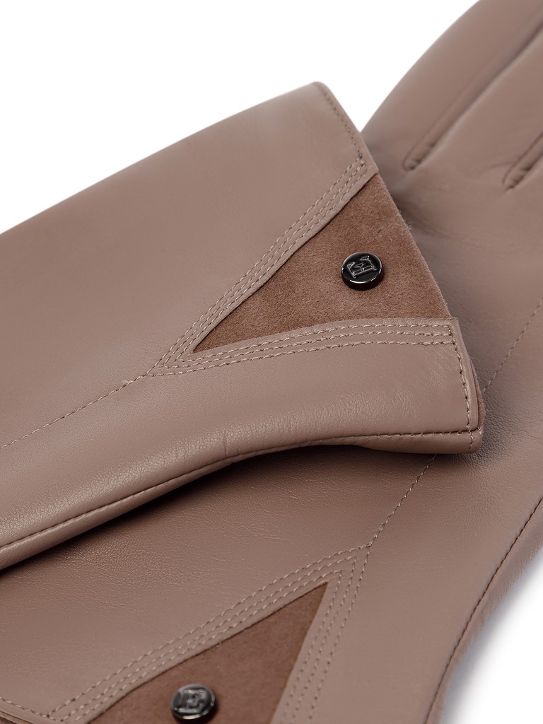 Перчатки торговой марки ELEGANZZA производства Китай, изготовлены из натуральной кожи ягненка. Подкладка: 70% шерсти, 30% кашемира. Лицевая часть перчатки украшена декором треугольной формы из натурального велюра, фирменной фурнитурой и декоративной отстрочкой. Длина манжеты от нижней точки большого пальца до края перчаток составляет - 5 см. Длина пальцев - средняя.