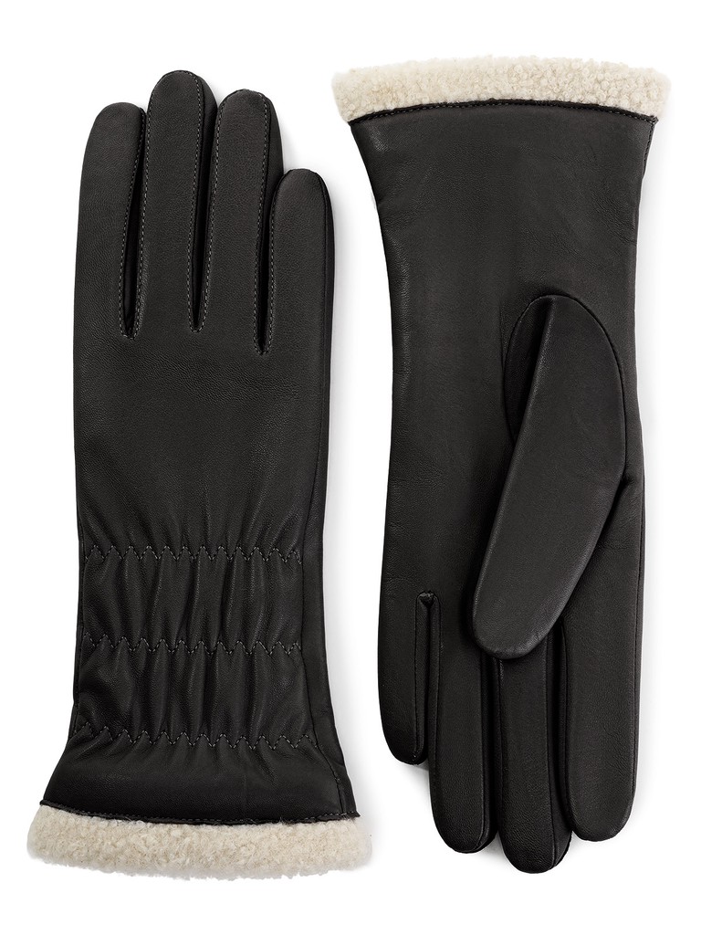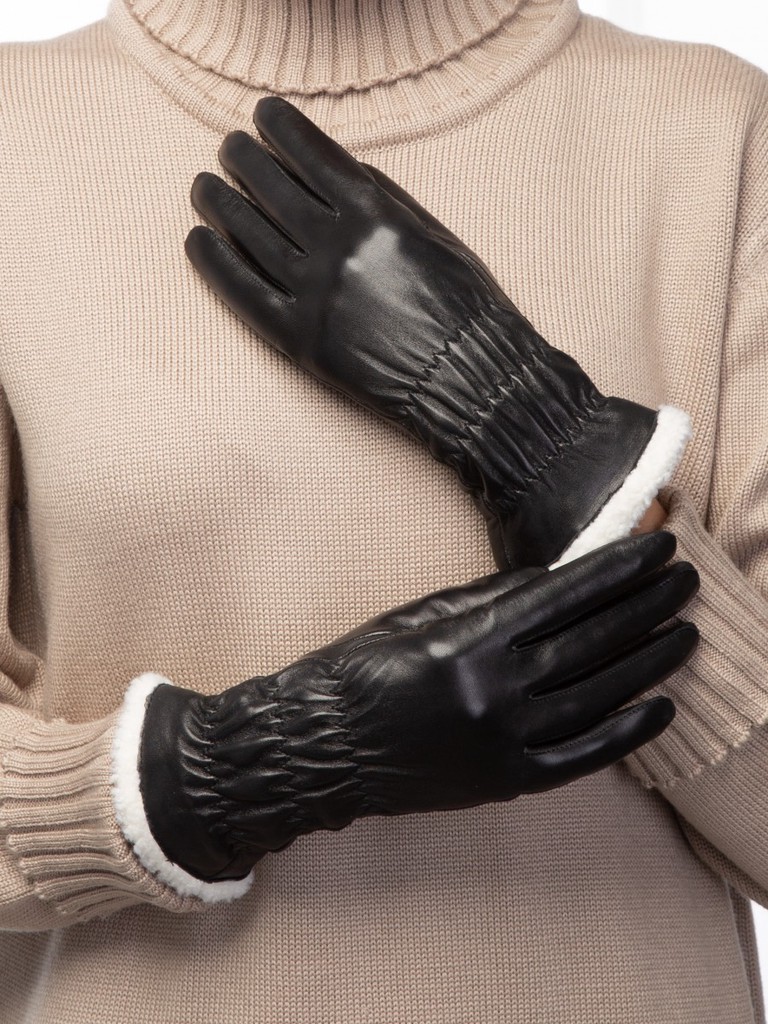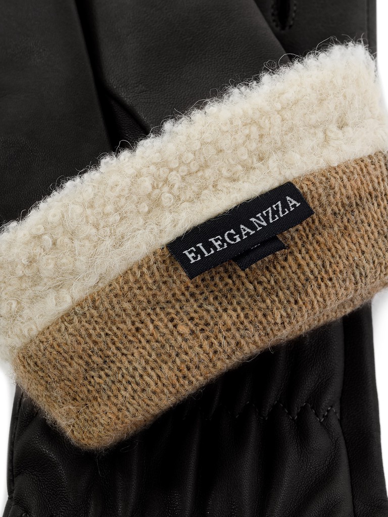 Перчатки торговой марки ELEGANZZA производства Китай выполнены из натуральной кожи ягнёнка. Подкладка: 100% шерсть. Отделка - декоративная резинка на манжете, обеспечивающая плотную посадку. Внутренняя часть отворота перчаток - отделка искуственным мехом. Длина манжеты от нижней точки большого пальца до края перчаток - 7 см. Длина пальцев - средняя.