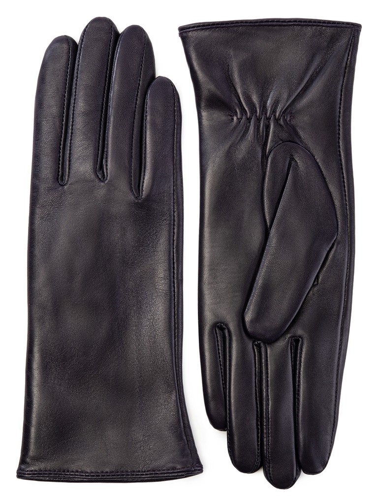 Перчатки женские базовые торговой марки LABBRA из натуральной кожи ягненка. Производитель Китай. Подкладка: 70% шерсть, 30% акрил. Резинка на ладонной части, что обеспечивает плотную посадку по запястью. Длина манжеты от нижней точки большого пальца до края перчаток - 5 см. Длина пальцев - средняя.