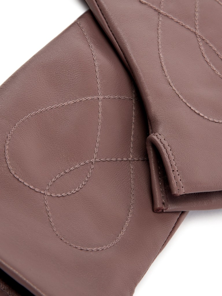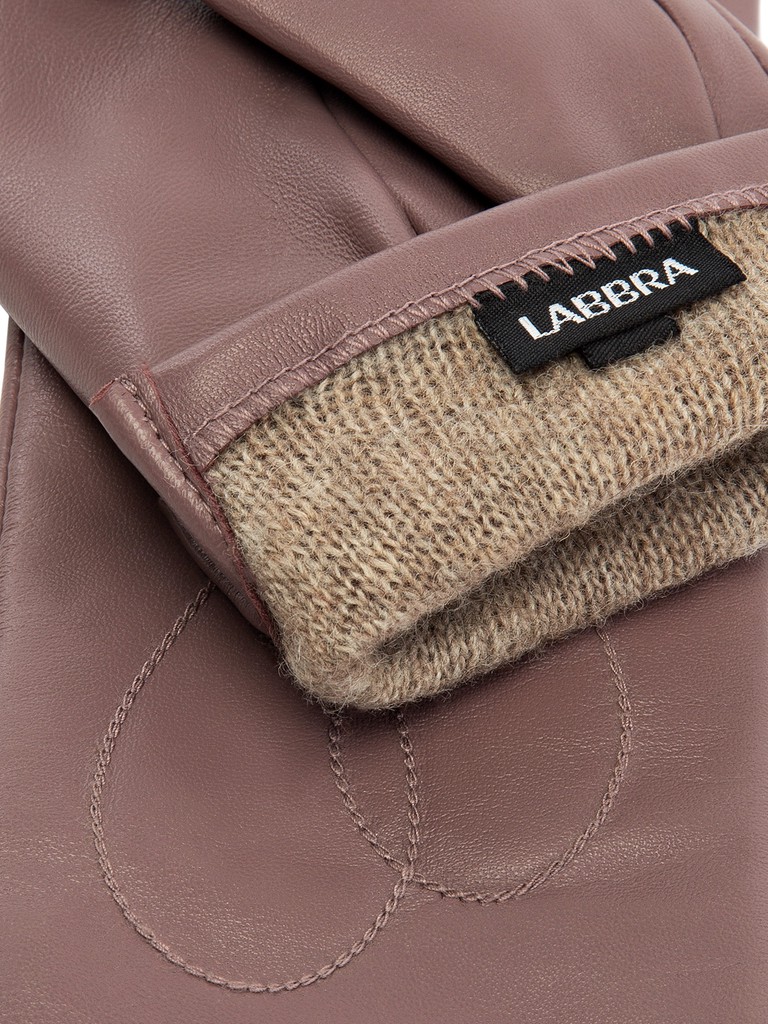 Перчатки торговой марки LABBRA из натуральной кожи ягненка. Производитель Китай. Подкладка: 70% шерсть, 30% акрил. Отделка - декоративные строчки на лицевой стороне. Длина манжеты от нижней точки большого пальца до края перчаток - 6.5 см. Длина пальцев - укороченные.