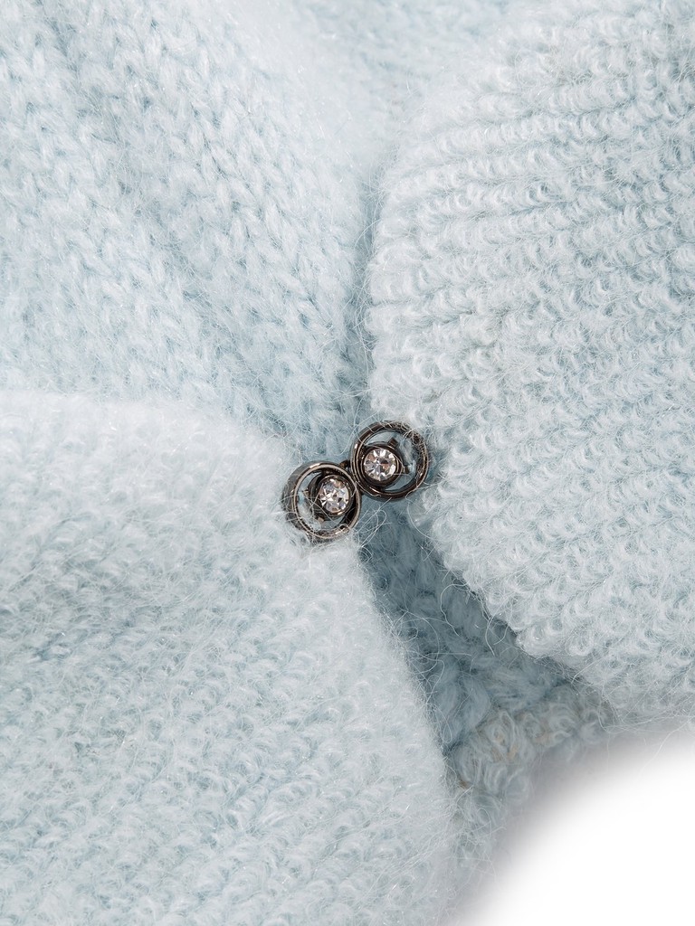 Ультрамодная теплая шапка-ушанка выполнена из смесовой итальянской пряжи с высоким содержанием мохера и альпаки. Шапка-трансформер - имеет на концах "ушей" красивую застежку со стразами, чтобы легко закреплять их на затылочной части. Обладательницы такого аксессуара точно не останутся незамеченными - ведь выполнена шапка в ярких и модных цветах. При этом она очень теплая - продублирована теплым полушерстяным подвязом.