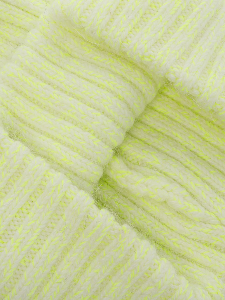 Ультрамодная шапка бини с увеличенным верхом и широким отворотом выполнена из пряжи, в основе которой ангора. Модель выполнена в модных цветах с добавлением контрастной нити неонового цвета в технике меланж. Шапка гармонично дополнит самые различные образы.