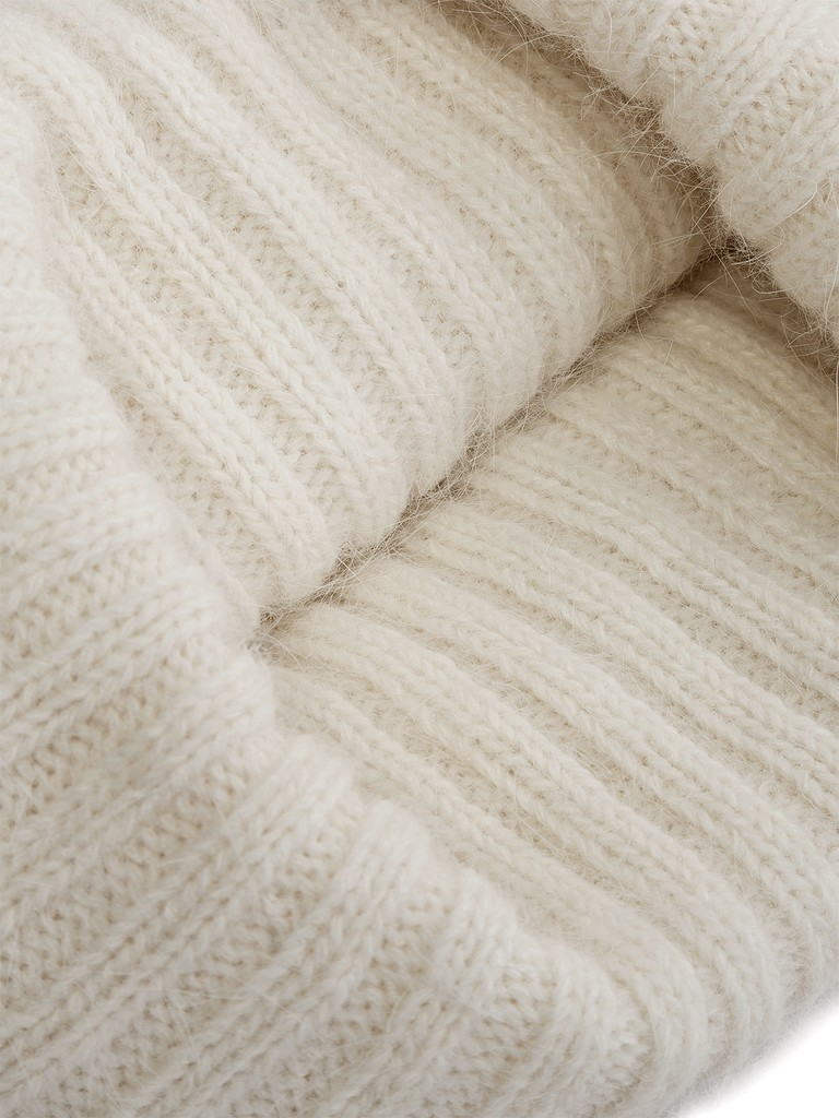 Ультрамодная шапка бини с увеличенным верхом и широким отворотом выполнена из пряжи с высоким содержанием ангоры. Шапка теплая, на дополнительном подвязе. Вязка шировой резинкой создает обьём оверсайз, который делает аксессуар особенно стильным.