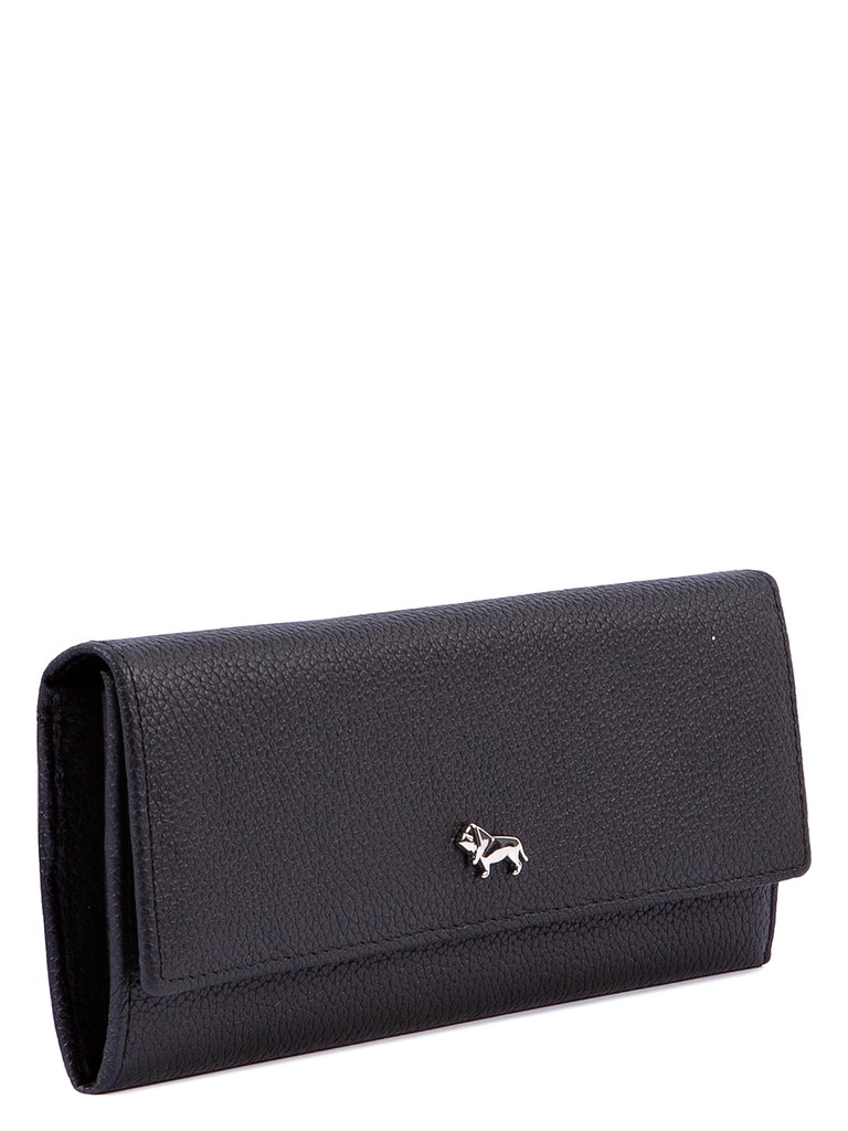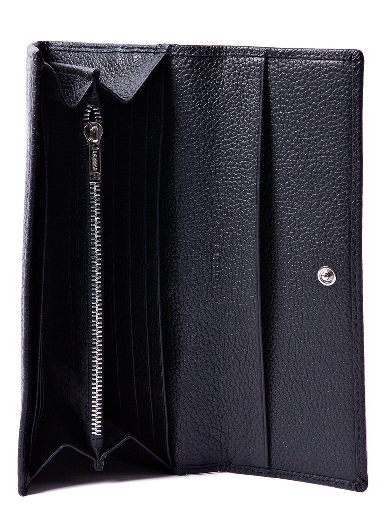 Женский кошелёк торговой марки LABBRA из натуральной кожи. Модель закрывается на клапан с кнопкой. Внутри кошелька есть 2 не складывающихся отделения для купюр и два дополнительных плоских кармана для купюр, . отделение для мелочи, которое закрывается на молнию, 14 карманов для карт и один плоский складывающийся карман для документов. На задней стенке кошелька есть открытый плоский карман.