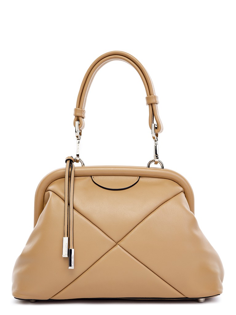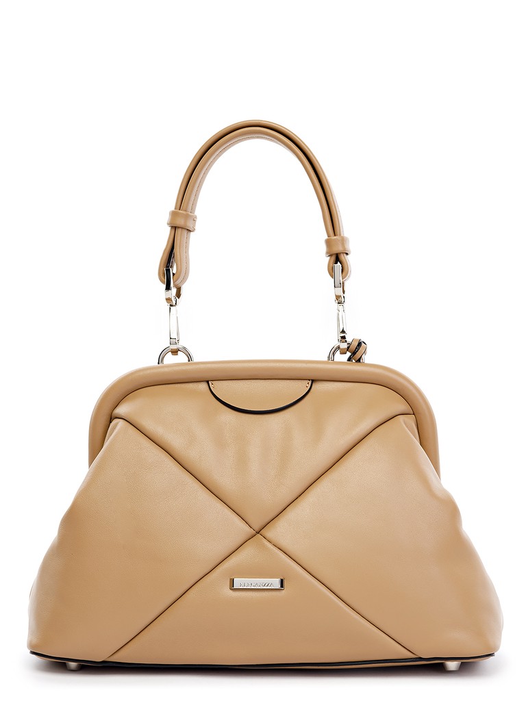 Женская сумка торговой марки Eleganzza из натуральной кожи. Модель закрывается на металлическую рамку, обтянутую кожей и имеет одно отделение с карманом на молнии и открытым карманом. Высота ручки - 15 см. Длина регулируемого наплечного ремня из натуральной кожи - 118 см, ширина – 1,8 см. Модель имеет ножки на дне. Не вмещает формат А4.