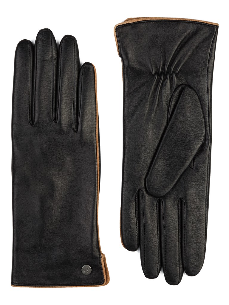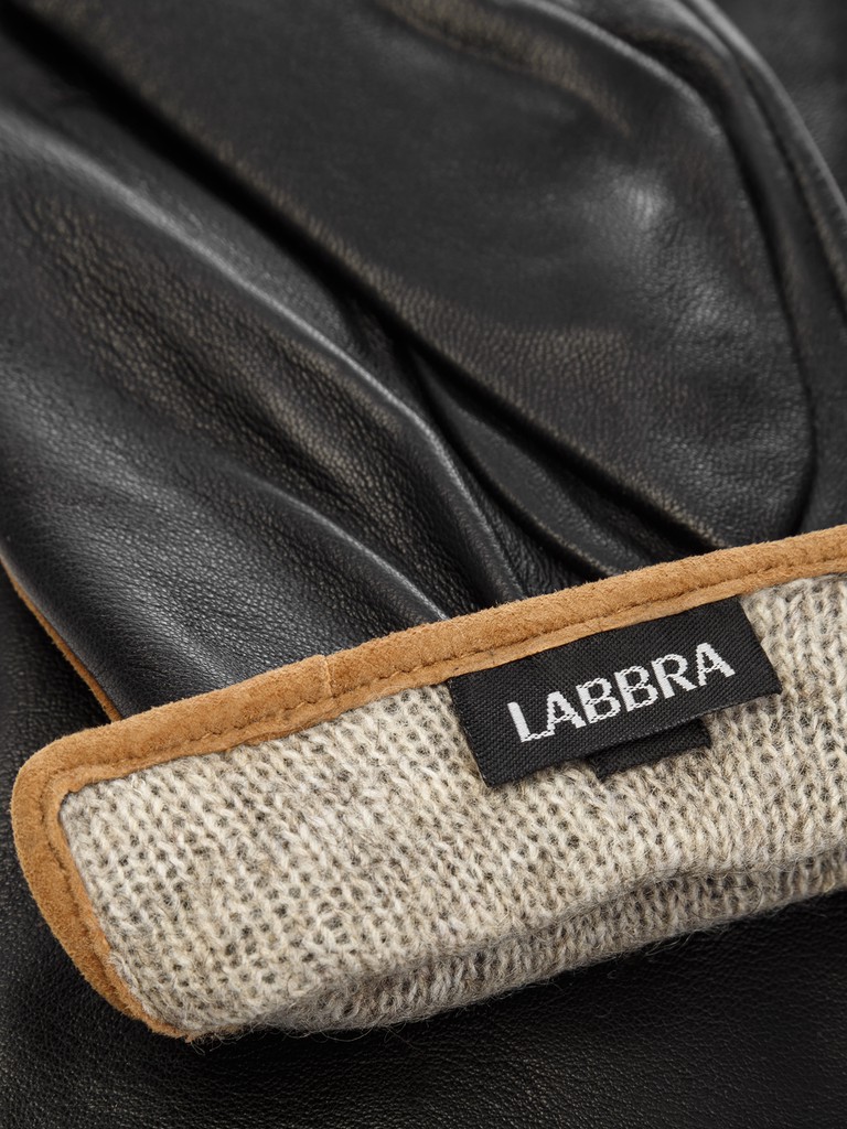 Перчатки женские торговой марки LABBRA из натуральной кожи ягненка. Производитель Китай. Подкладка: 70% шерсть, 30% акрил. Отделка - кант контрастного цвета на боковой части по линии мизинца и линии манжета, выполненный из велюра; фирменная фурнитура LABBRA. Длина манжеты от нижней точки большого пальца до края перчаток - 5,5 см. Длина пальцев - средняя.