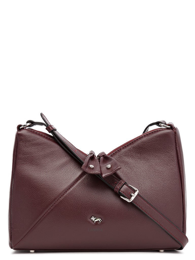 Женская сумка торговой марки Labbra из натуральной кожи. Модель закрывается на металлическую молнию и имеет одно отделение с карманом на молнии и двумя открытыми карманами. На задней стенке - вертикальный карман на молнии. Длина наплечного ремня из натуральной кожи - 110 см. ширина - 1,8 см. Модель имеет ножки на дне.