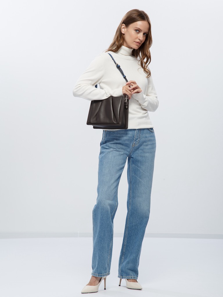Женская сумка торговой марки Eleganzza из натуральной кожи. Модель имеет три отделения. Центральное отделение закрывается на металлическую молнию и содержит внутри карман на молнии и два открытых кармана. Дополнительные отделения закрываются на магнитные кнопки и не содержат карманов. Высота съёмной ручки - 31 см., длина наплечного ремня из натуральной кожи - 118 см., ширина - 1,8 см. Модель не имеет ножки на дне.