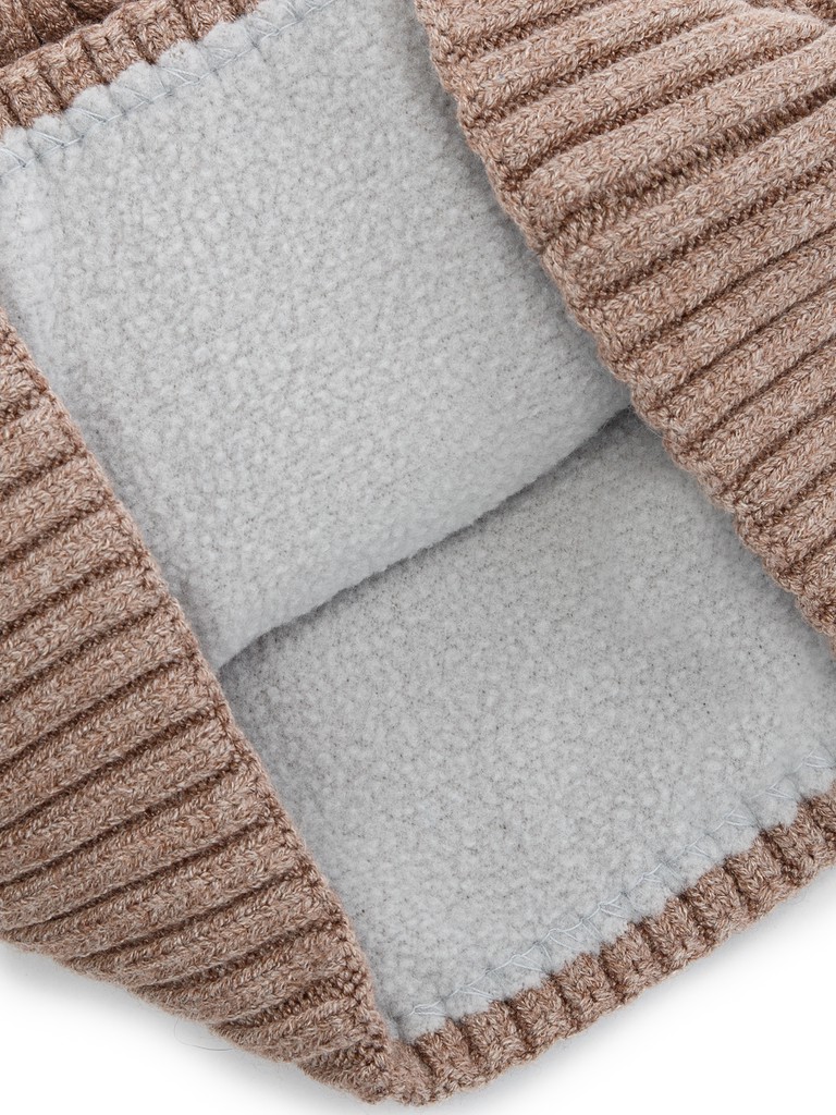Модная форма мужской шапки выполнена из смесовой пряжи, в составе которой шерсть и кашемир. Изделие с отворотом, связаным английской резинкой и гладкой верхней частью. Шапка выполнена как в базовых, практичных цветах.