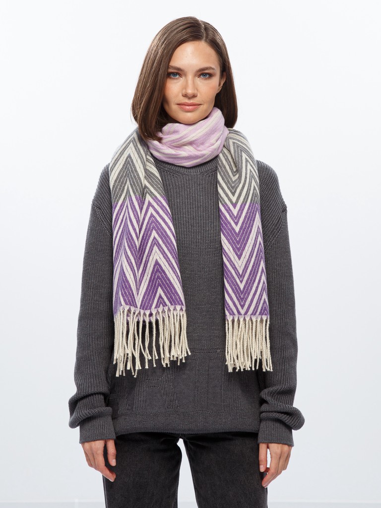 Палантин женский торговой марки Labbra. Состав: 50% шерсть, 20% хлопок, 30% акрил. Тип подгибки: фабричная закрепка, кисти. Размер: 65х180см.