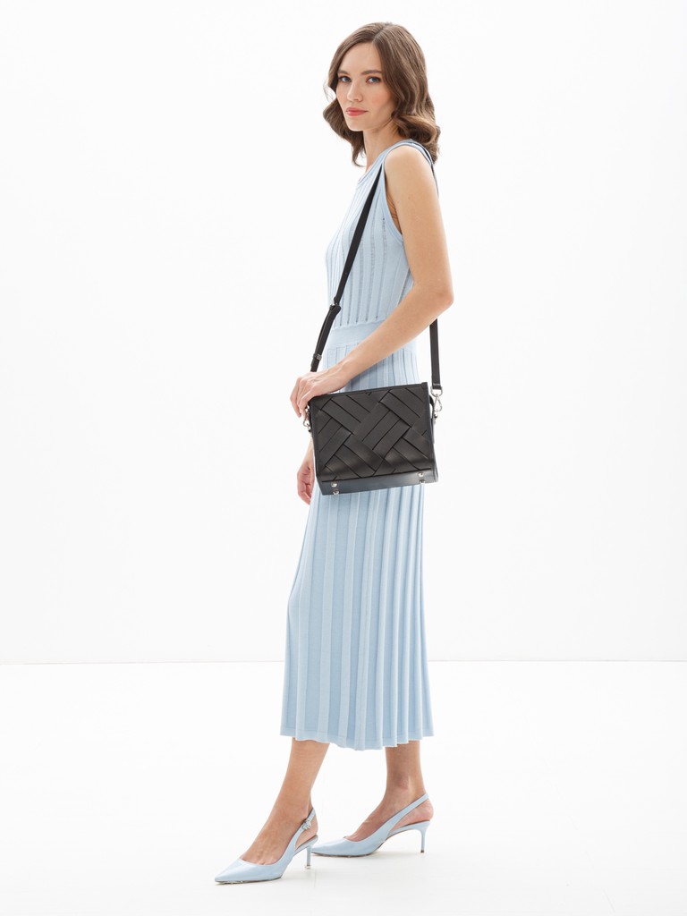 Женская сумка торговой марки Eleganzza из натуральной кожи. Модель имеет три отделения. Центральное отделение закрывается на металлическую молнию и содержит внутри карман на молнии и два открытых кармана. Дополнительные отделения закрываются на магнитные кнопки и не содержат карманов. На задней стенке - карман на молнии. Длина наплечного ремня из натуральной кожи - 118 см., ширина - 1.5 см. Модель имеет ножки на дне.