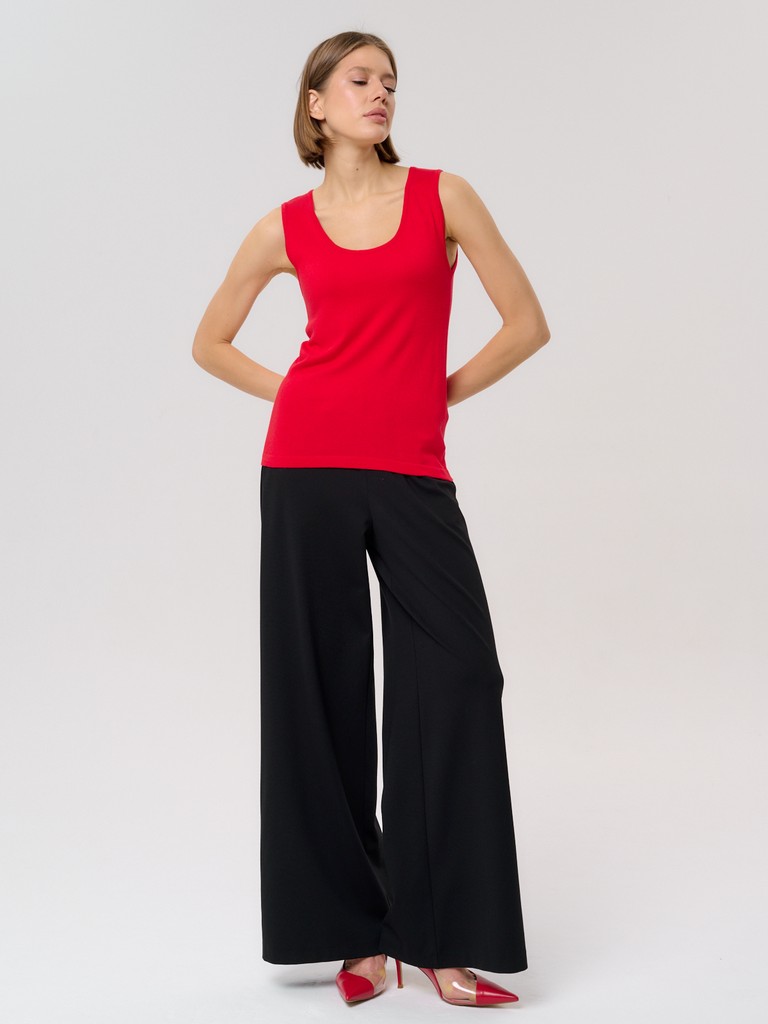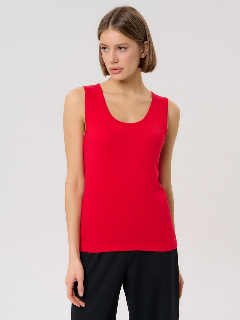 Классическая женская майка, выполненная из трикотажа базового цвета. Неотъемлемая универсальная часть гардероба.