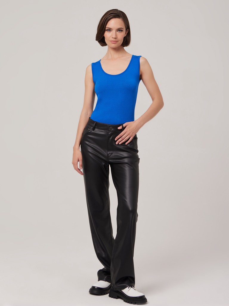 Классическая женская майка, выполненная из трикотажа базового цвета. Неотъемлемая универсальная часть гардероба.