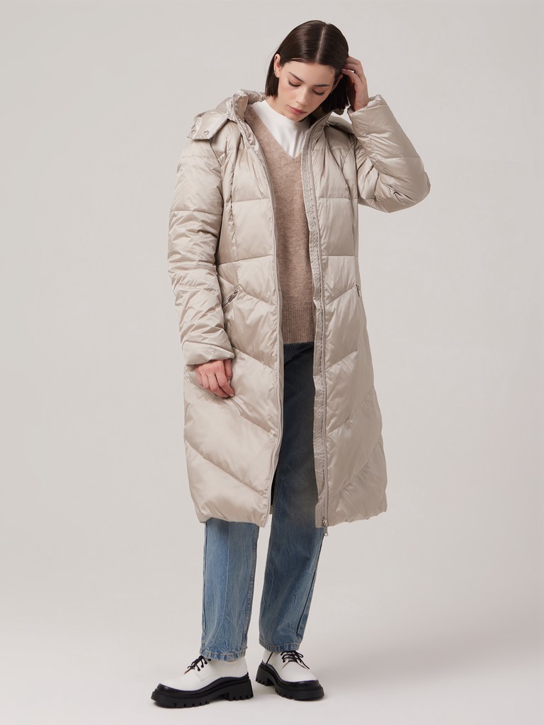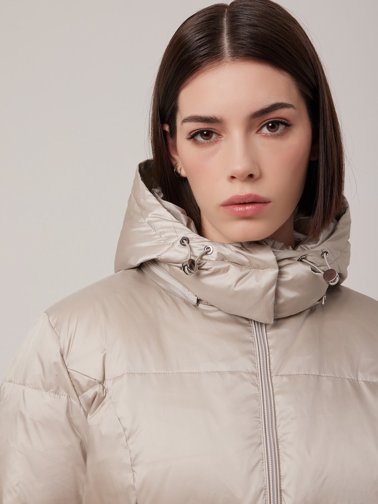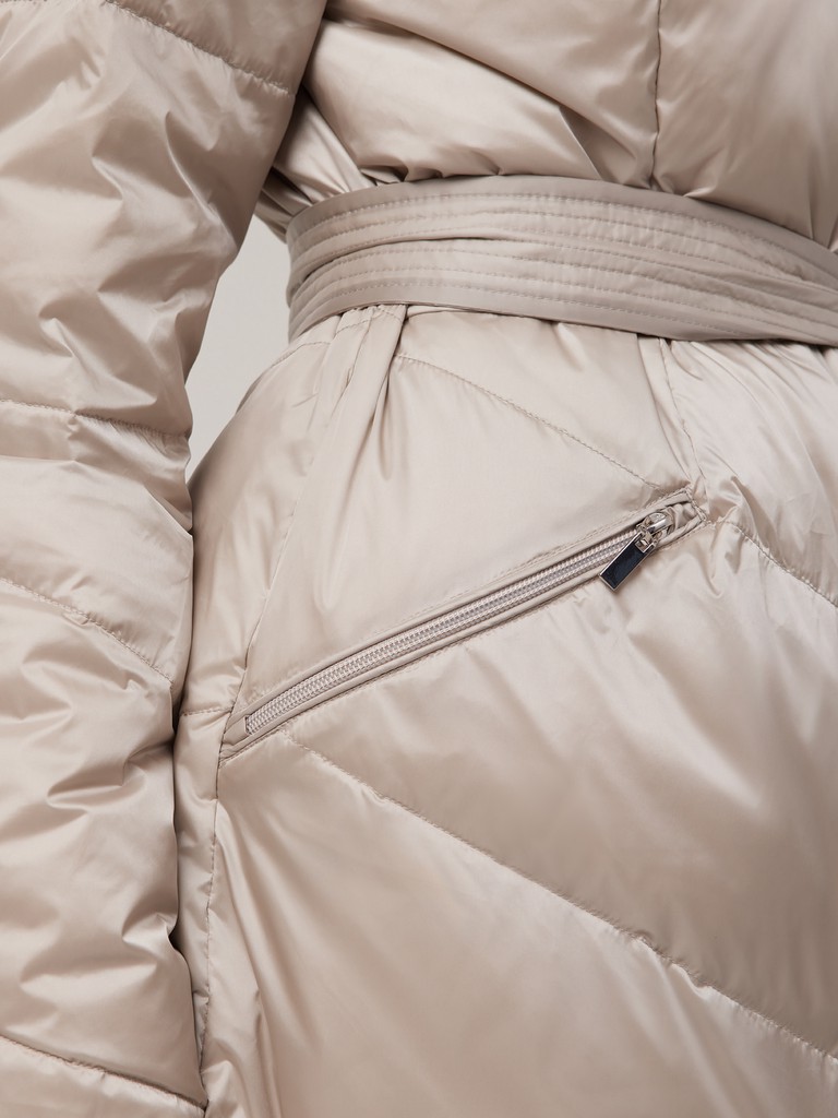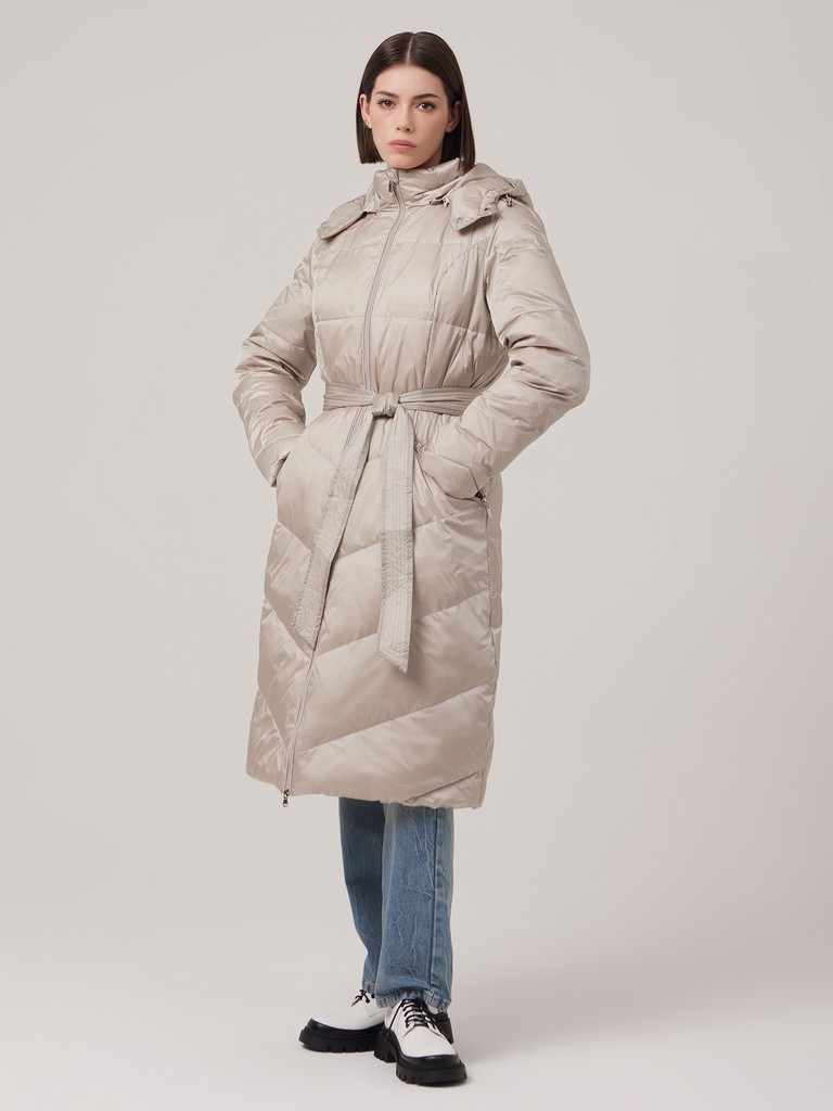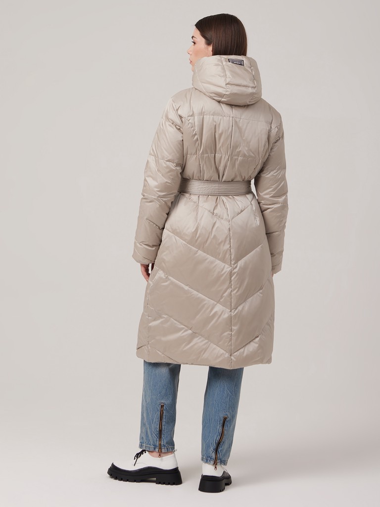 Женское пальто полуприлегающего силуэта с отстёгивающимся капюшоном и декоративной стёжкой. Обладает функциональными карманами с застёжкой на тесьму-молнию, втачными рукавами с ниткой-резинкой для большего прилегания. У пальто удобный съемный капюшон, который застегивается на внутренние магниты. Пояс выполнен с вертикальной отстрочкой, которая гармонично смотрится на изделии.